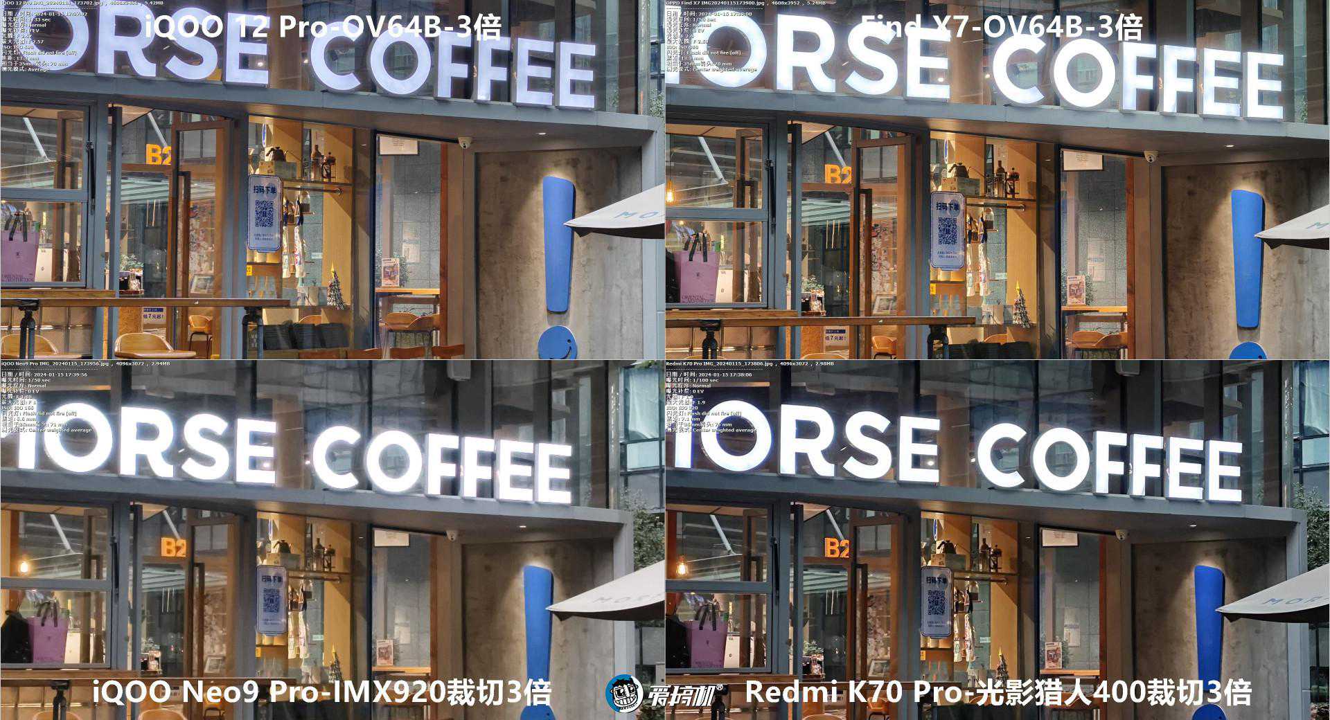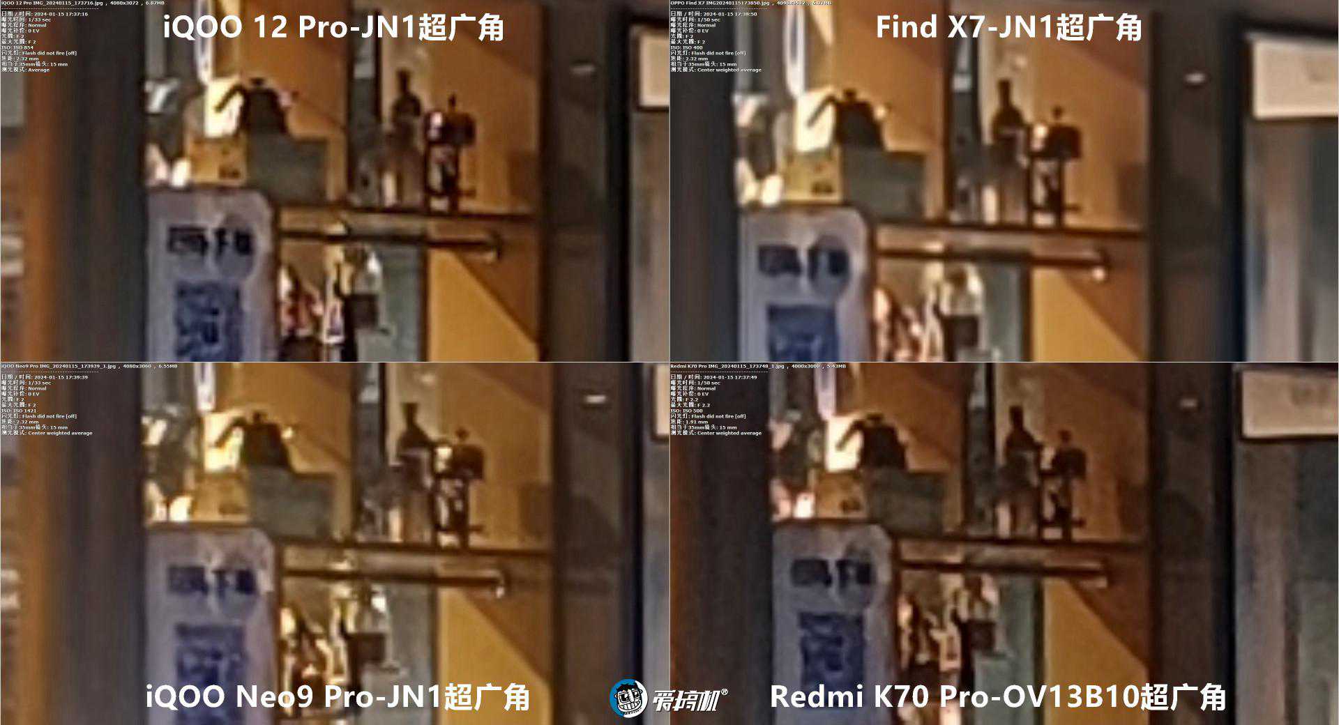 所以找了iQOO12Pro(OV50H主摄+JN1超广角+OV64B3倍潜望长焦)、iQOONeo9Pro(IMX920主摄+JN1超广角)拼凑,而RedmiK70Pro在旁围观(光影猎人800主摄+OV13B10超广角+2倍无OIS的光影猎人400长焦)。