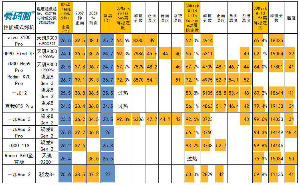 OPPOFindX7的热稳定度和vivoX100Pro只是五五开,都属于比较差的水平。主要是因为其温控非常保守(3DMark烤机最高45.6度),以及过于刚猛的性能模式(这么爱冲的调教,适合配散热背夹玩游戏)。