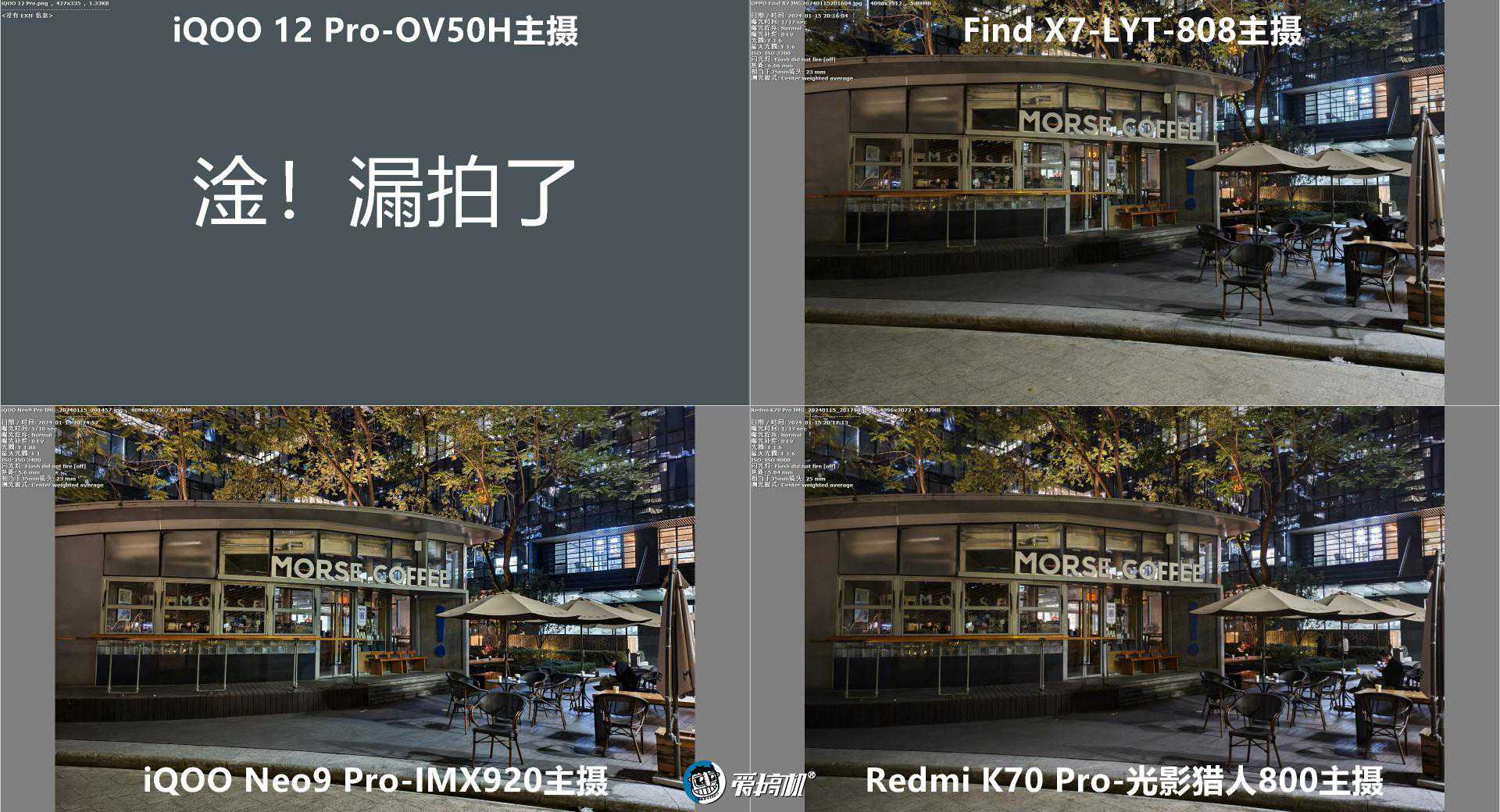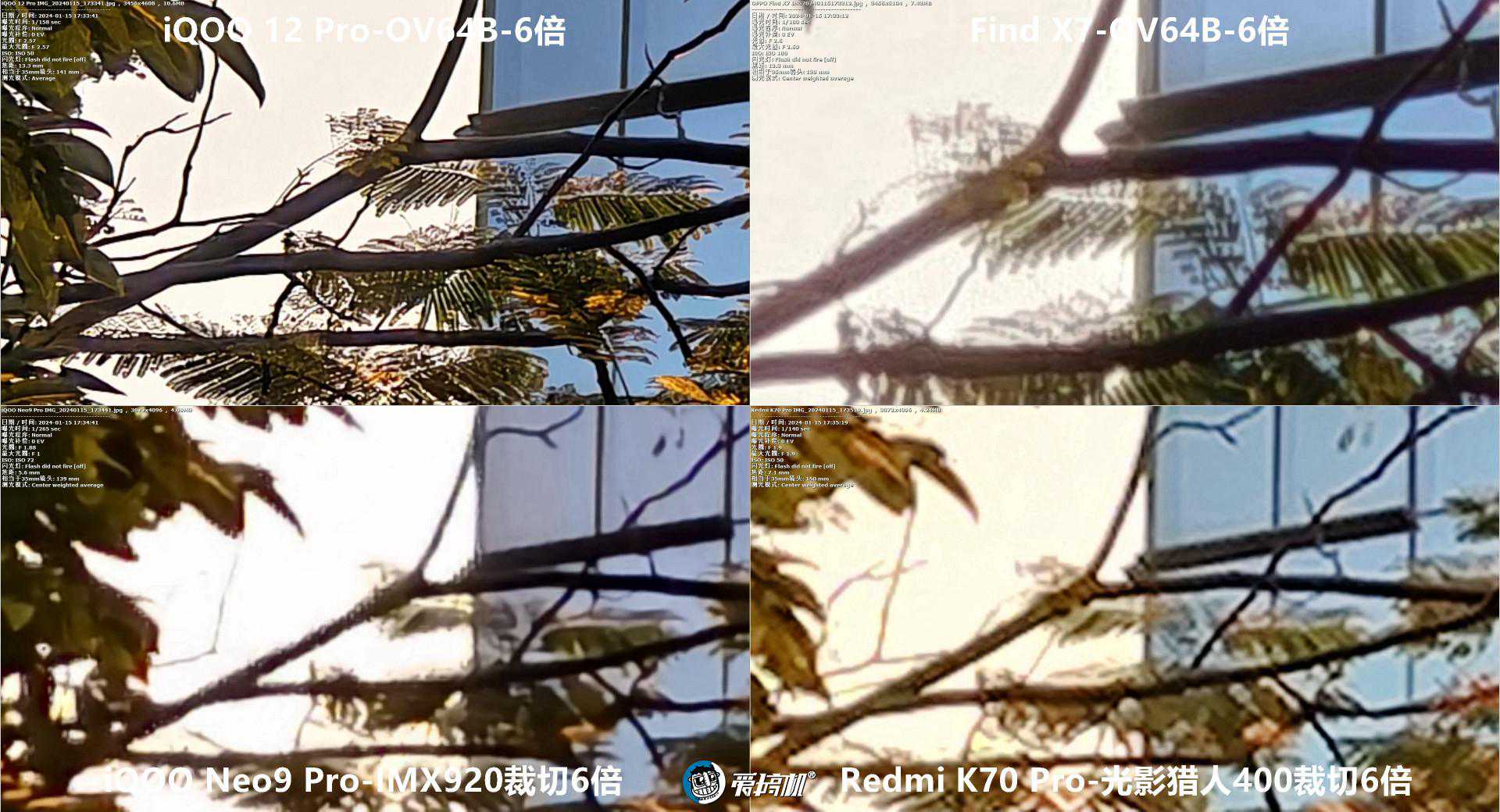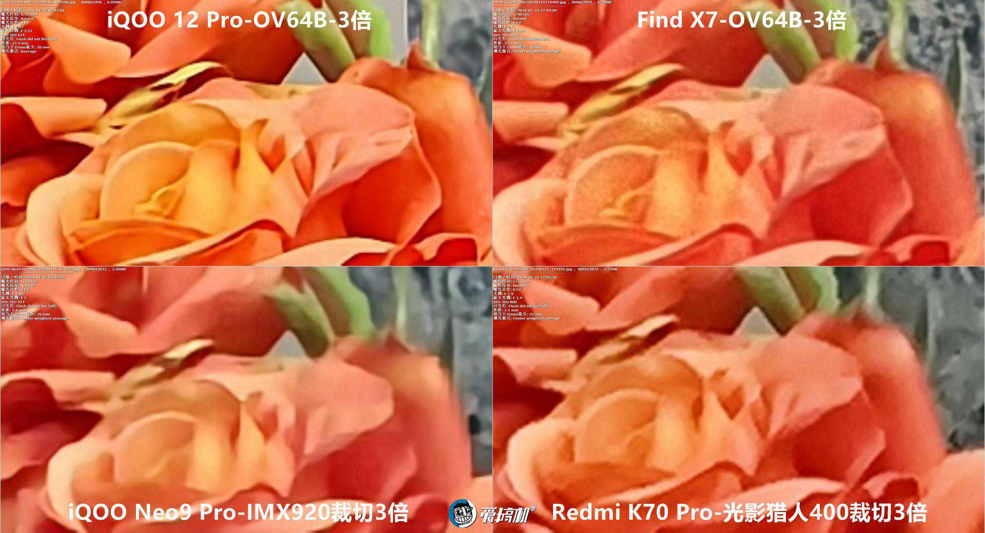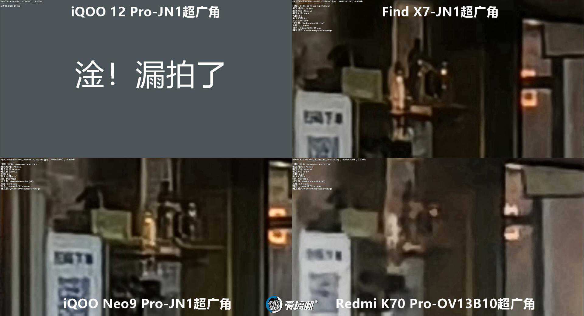 所以找了iQOO12Pro(OV50H主摄+JN1超广角+OV64B3倍潜望长焦)、iQOONeo9Pro(IMX920主摄+JN1超广角)拼凑,而RedmiK70Pro在旁围观(光影猎人800主摄+OV13B10超广角+2倍无OIS的光影猎人400长焦)。