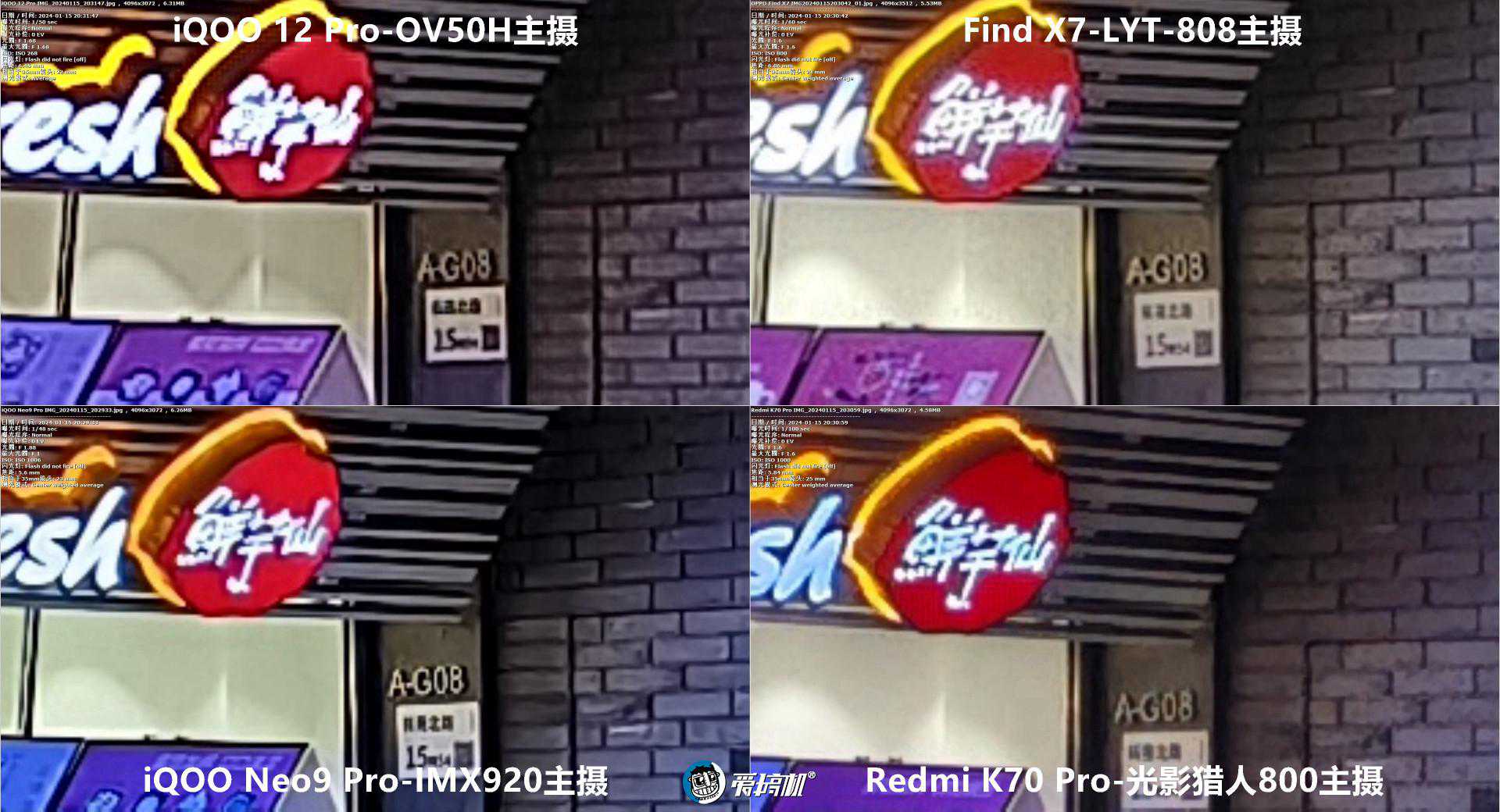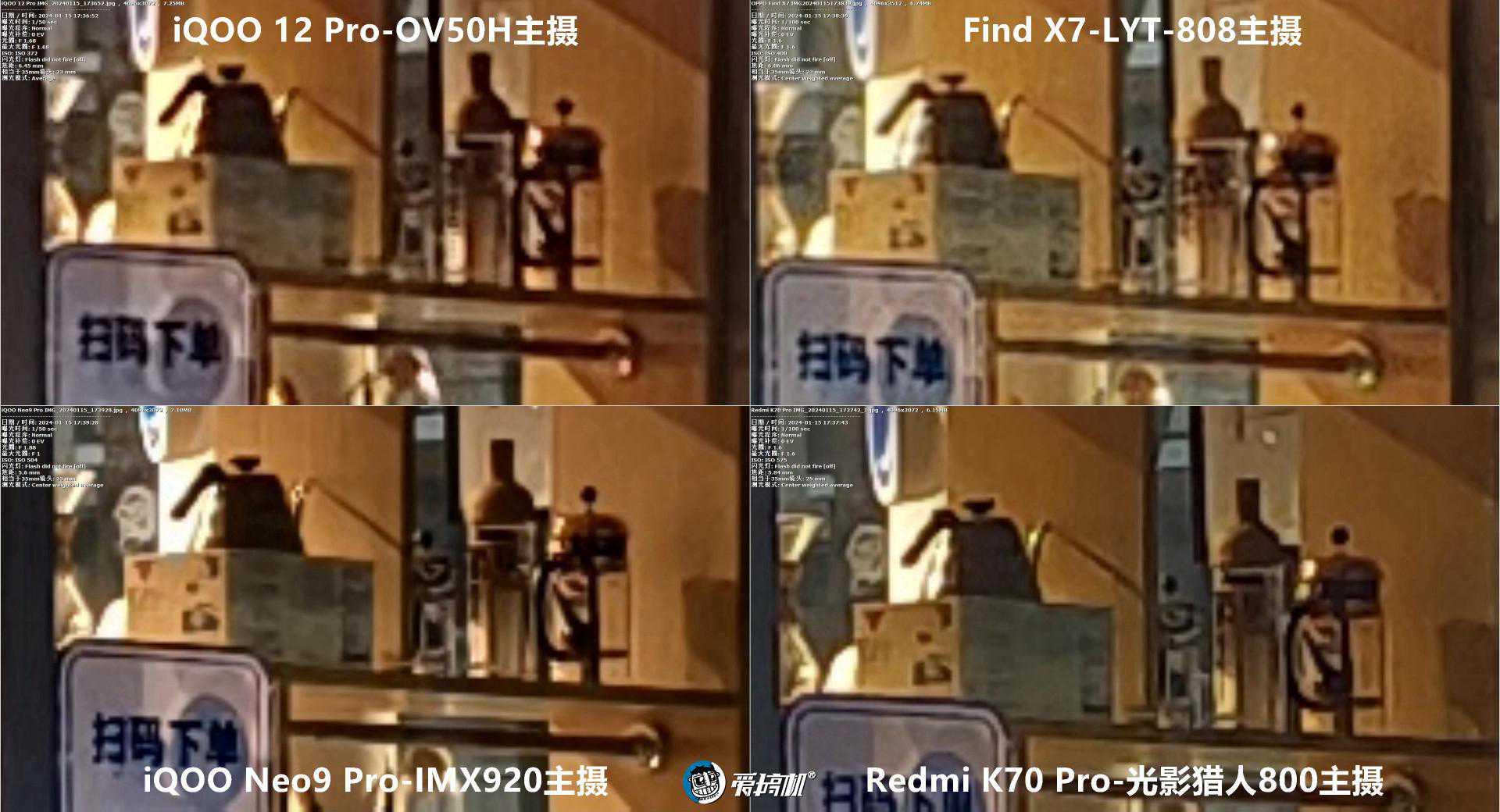 LYT-808主摄,规格比友商强,主要体现在宽容度更强一些。其降噪力度较轻,会保留一定程度的噪点,高光压制弱于iQOO和Redmi。整体能赢光影猎人800的Redmi,但只能和iQOO/vivo的IMX920“五五开”。