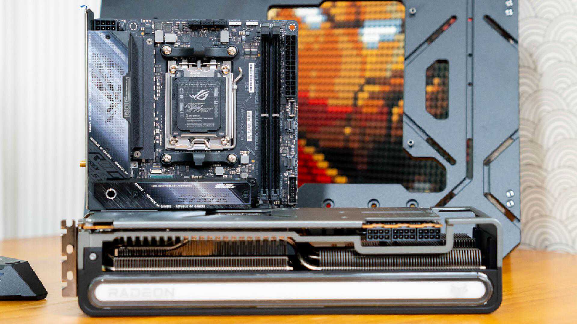 可以对比一下ITX主板安装在显卡上的效果。