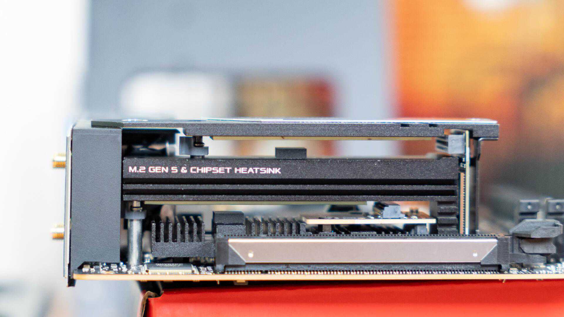 侧面查看堆叠式设计,可以看到散热盔甲上还有芯片散热组的标语。