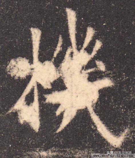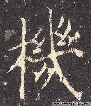 左部“木”,中横抗肩,竖笔形态上下粗而腰部渐细(且左边缘基本垂直,右边缘向内弯曲);撇笔起笔应从横竖交叉点内起笔,收笔于上部中横起笔处垂直的位置;点从撇笔下沿竖中引出,不要大。