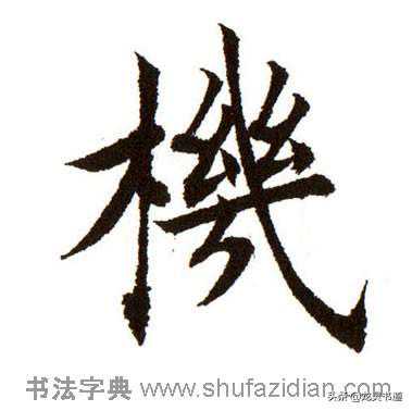 千文七二四机机:左右结构,左收右放。左部“木”,中横抗肩,竖笔形态上下粗而腰部渐细(且左边缘基本垂直,右边缘向内弯曲);撇笔起笔应从横竖交叉点内起笔,收笔于上部中横起笔处垂直的位置;点从撇笔下沿竖中引......