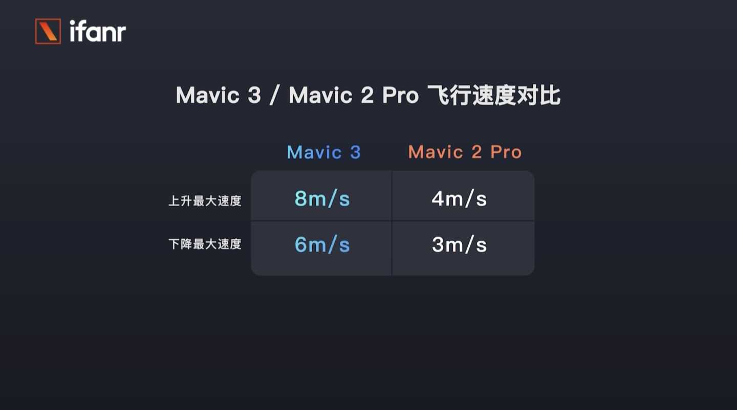 它的飞行速度可以用「恐怖」二字形容。开启运动档,Mavic3上升、下降的速度,分别能达到每秒8米、每秒6米,是Mavic2Pro的两倍。