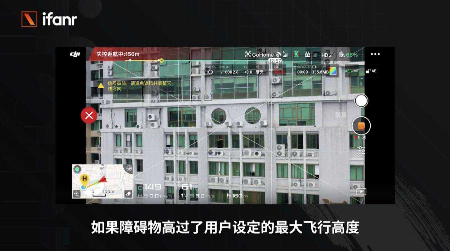 这个过程中,无人机会根据路线上障碍物的高度,不断向上爬升。耗电多不说,如果障碍物高过了用户设定的最大飞行高度,就可能发生炸机事故。
