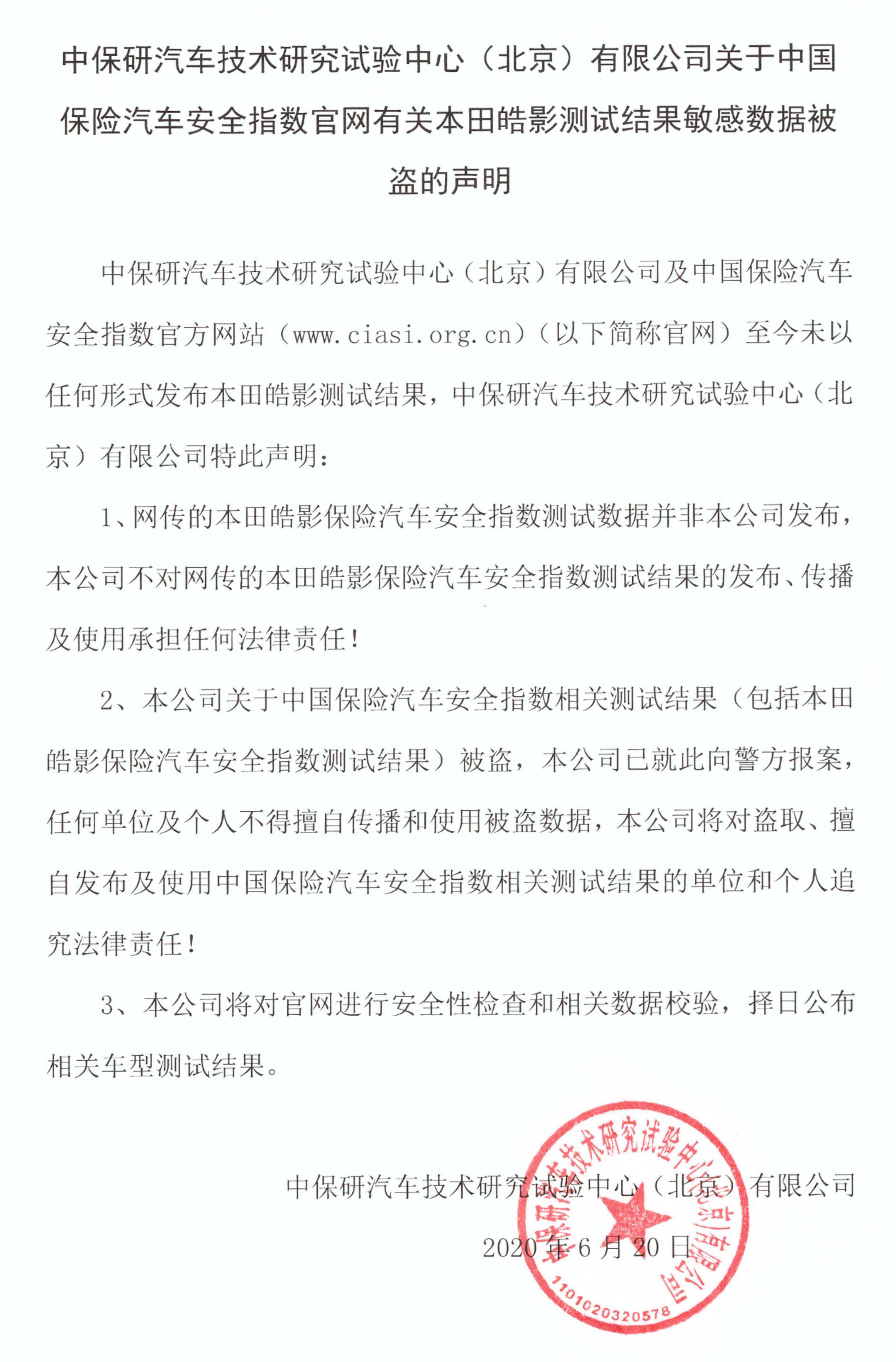 6月19日,有网友在中保研官方网站的隐藏链接内发现了本田皓影的碰撞测试成绩,可以看到,当时中保研给本田皓影的25%偏置碰撞评价是A(良好)。