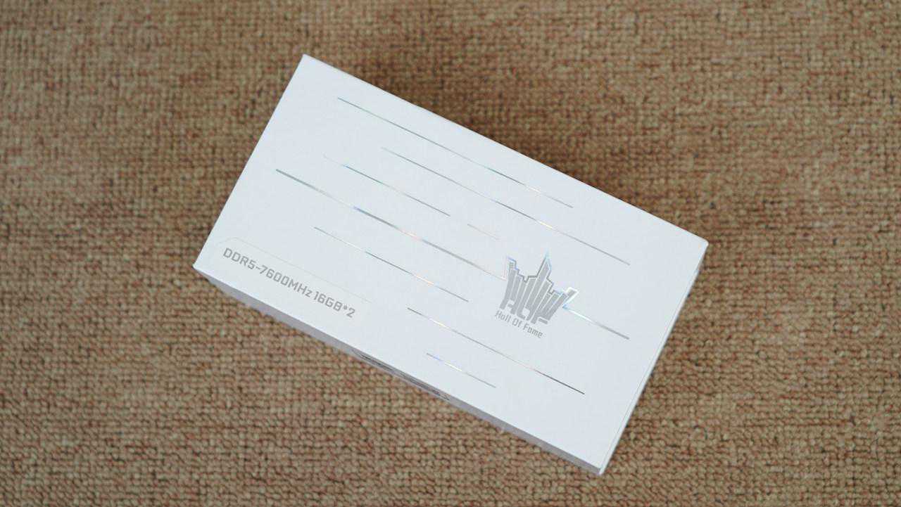 内存正面,可以看出,内存采用纯白色HOF马甲设计,配合电泳工艺处理表面+高光切面HOFLOGO外形,质感拉满的同时,又不失经典。