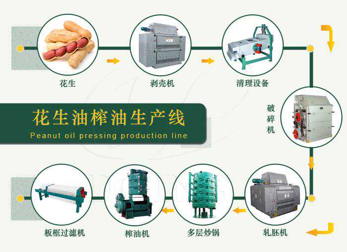 10吨花生榨油机生产线属于大型榨油生产线设备,日处理花生仁原料10吨,设备配置由花生脱壳机-滚筒炒锅(电导热油平底炒锅)-上料机-榨油机-滤油机(板框滤油机)配制而成,其工艺流程主要清理—剥壳—炒籽—压榨—过滤—花生油毛油,设备可以根据客户需求调整配置。