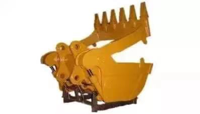 挖掘机松土斗是在挖斗上安装高强松土齿,以达到较大的挖掘强度,松土挖掘一次完成。适合硬土、次坚石、风化石的粉碎、挖掘及装载等作业环境。缺点是斗容较小。