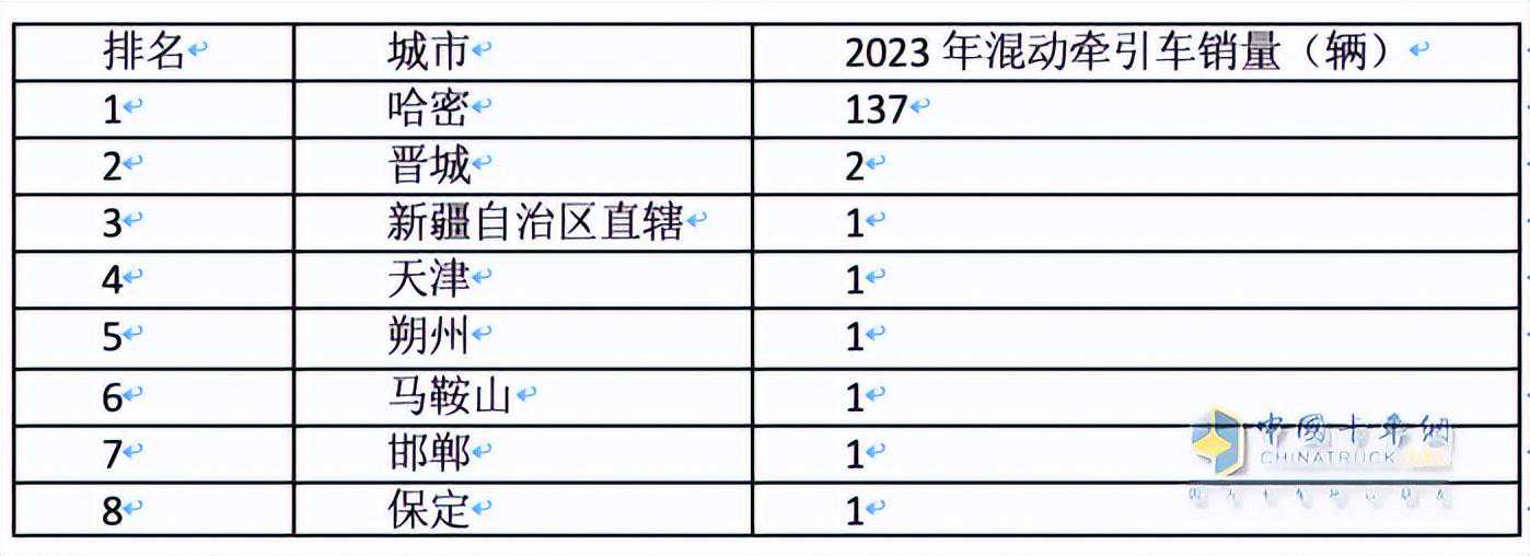上表可见,2023年燃料电池牵引车的主销城市是唐山、徐州、郑州、天津、北京、上海等城市。