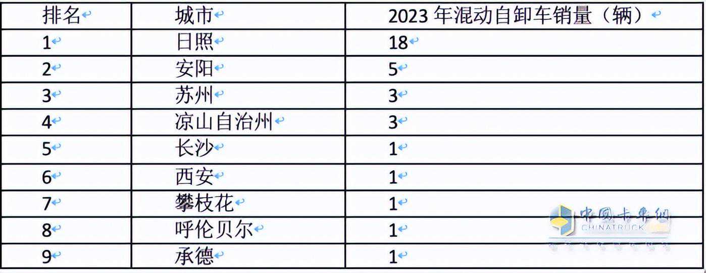 上表可见,混动自卸车主要销往日照、安阳、苏州、凉山自治州等车城市。