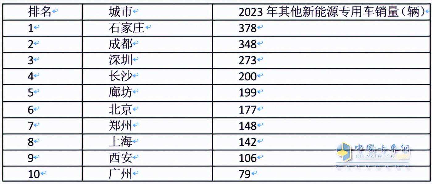 上表可见,2023年新能源载货车主要流向上海市、深圳、海东地区、重庆、成都、天津、嘉兴、北京等区域。