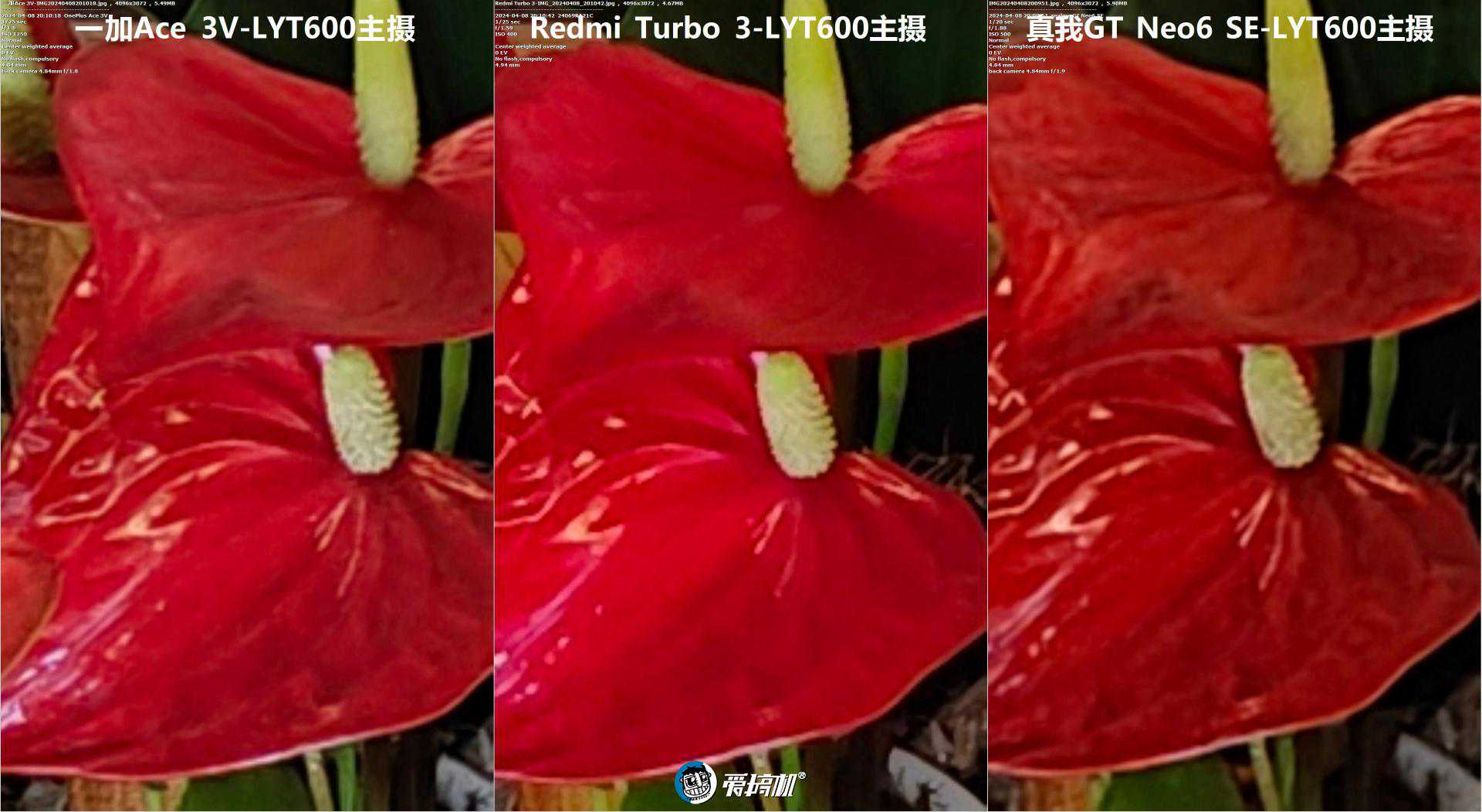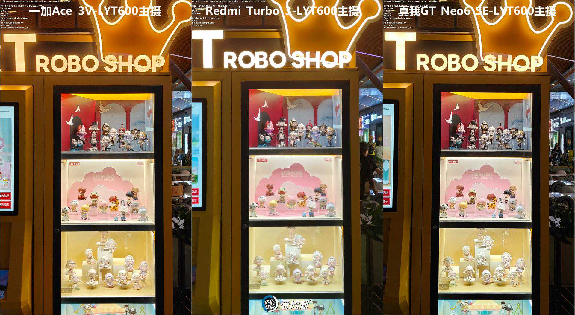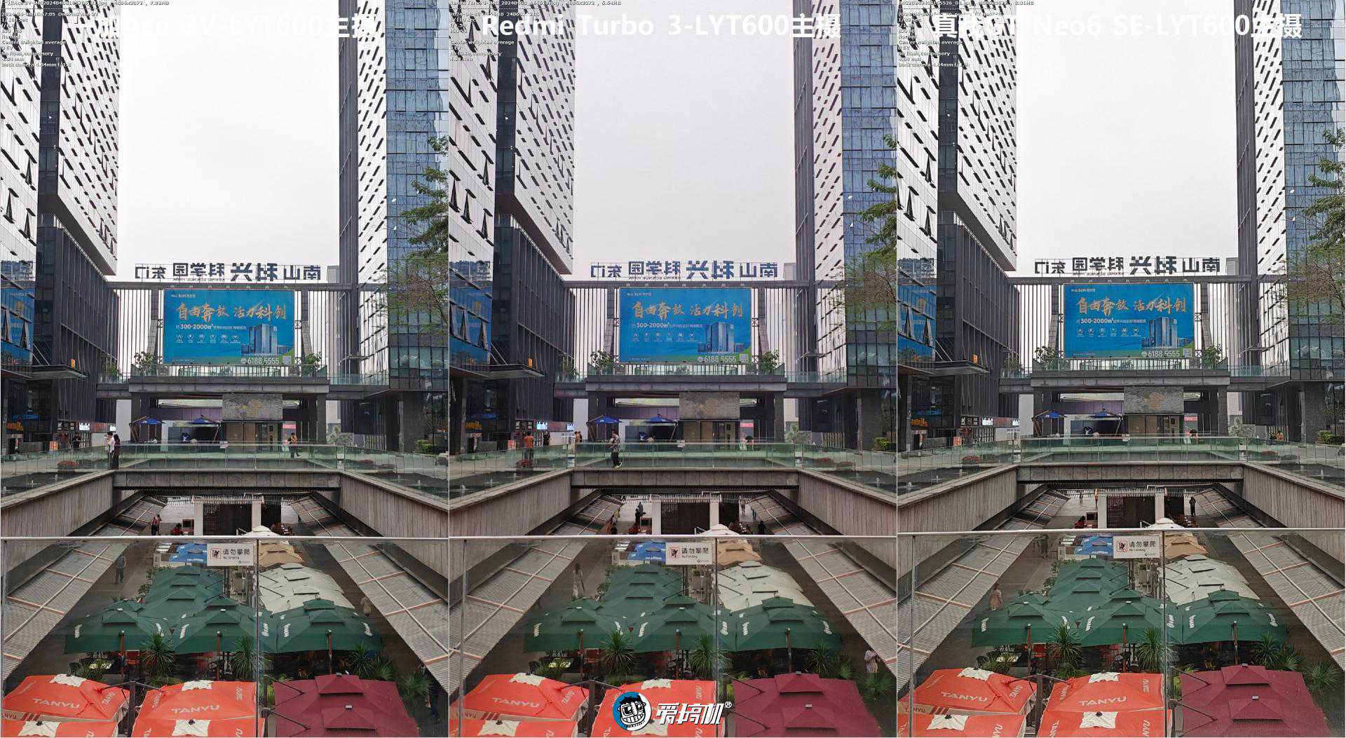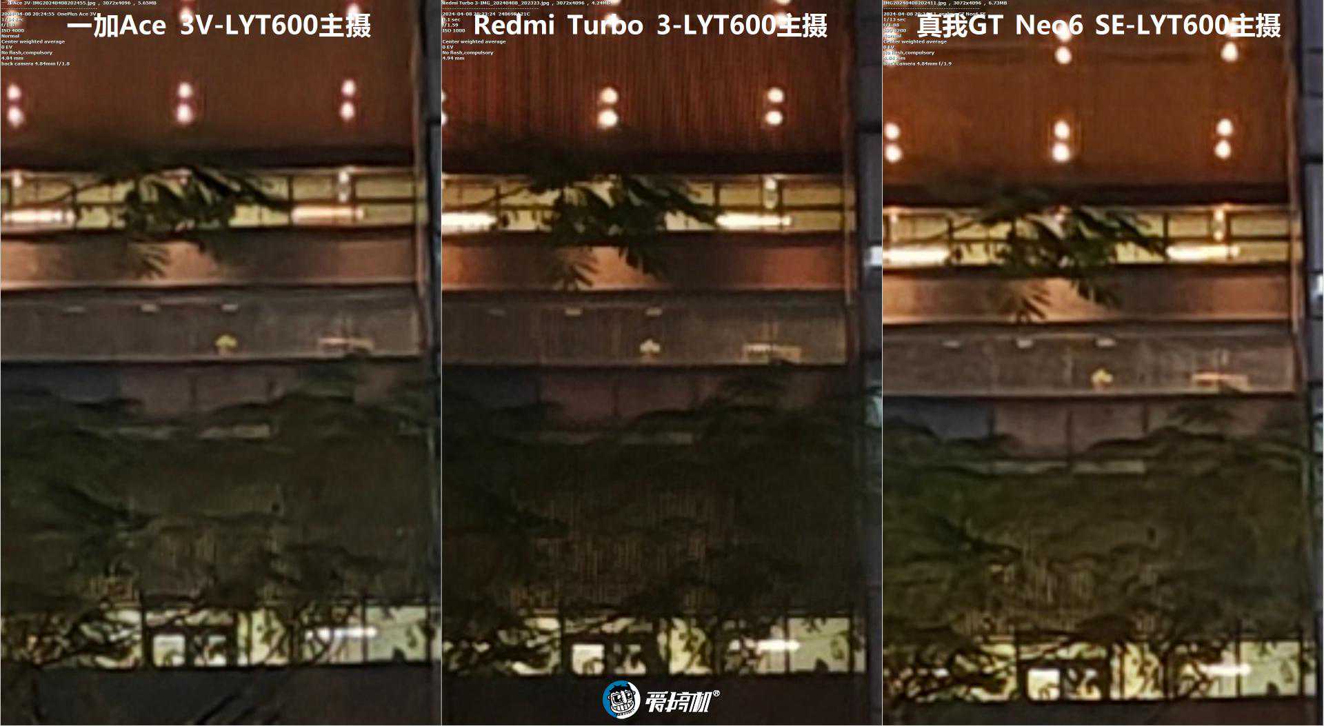 虽然都是一样的传感器,但配的镜头不太一样。RedmiTurbo3主摄是光圈,一加Ace3V是,真我GTNeo6SE是。而超广角上,真我和一加接近,Redmi的视角要广一点(镜头焦距短一点)。