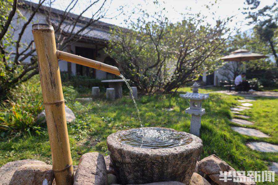 民宿设计外观基本是一个日式风格,配合崂山的樱桃花,还是非常有意境的,在设计上山卓发挥自己的专业特长,从室内到庭院,都经过精心思考。走进小院,一股“静”意扑面而来,安静的庭院伴着潺潺流水的声音,欣赏着九水广阔的山景。四舍吾入室内有两间日式榻榻米,其他为现代轻奢,非常适合几个家庭一起小聚几日。山卓表示,“做情怀的人就是这样不食人间烟火,也比较懒散,所以就想把这里做成自助式的,院中有厨房,二楼有一个空间,适合看书、喝茶,还有一个娱乐室,可以打打牌,总之这里还是一个取静的地方。”