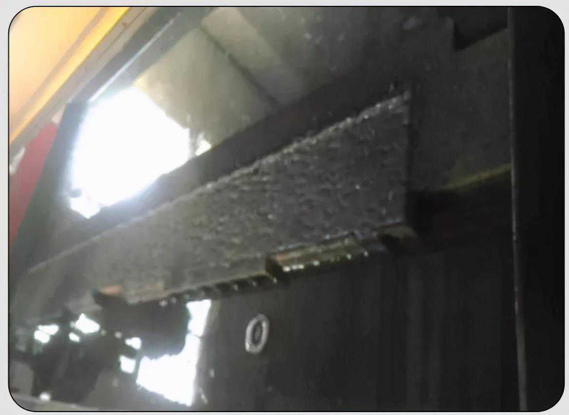 方大特钢针对烧结篦板制作工艺已经摸索三年,取得了很好的成效。此工艺先是水槽内焊,变形得到控制,用机械焊,焊丝直径Φ2.8,一个面焊两遍,数控实现自动焊,洛氏硬度偏差在2度以内无焊接接头,焊接产生的裂纹与单辊运动方向平行延长了使用寿命,最易磨损区采用加焊低碳钢格子加厚堆焊层,否则堆焊层太厚容易脱落,这个部分要实现自动焊,格子必须严格控制尺寸,我们采用数控切割机隔出来后手工焊上去,再用机械手来焊的。