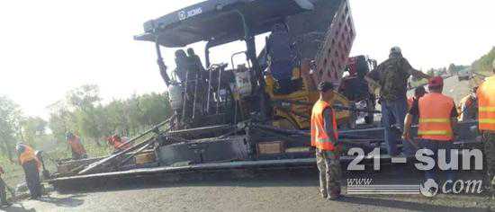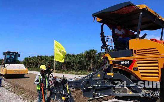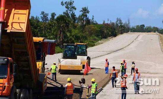 徐工RP953摊铺机高端机型携手徐工单钢轮压路机助力东帝汶高速公路建设