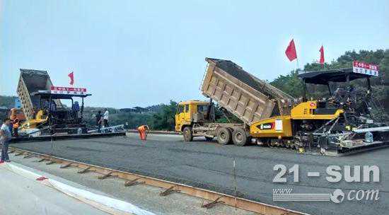 徐工摊铺机高端机型RP953携手徐工单钢轮压路机组团助力东帝汶高速公路建设