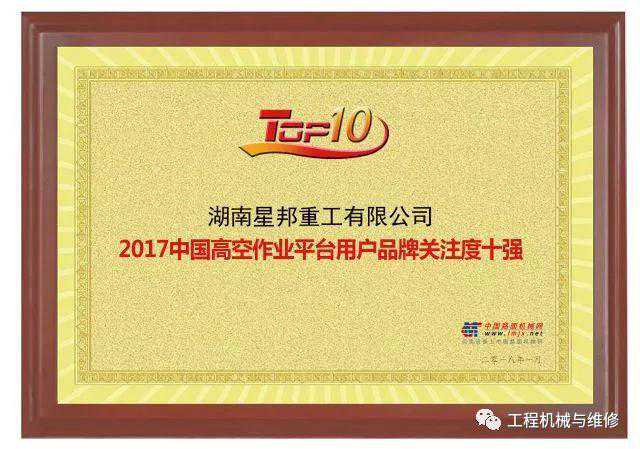 作为国内起步最早,且专注高空作业设备研发制造商,星邦重工一步一个脚印,坚持自主研发和注重产品质量改进,2018年1月连续入选中国高空平台十强品牌前三甲,体现了客户对星邦重工的认可和信赖,同时也是对星邦重工在产品、服务、品牌提升上所做不懈努力的肯定。