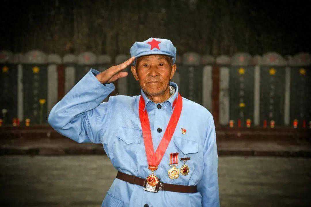 在红军烈士墓前,王茂贵庄严地敬了一个军礼。■王茂贵,男,中共党员,1937年10月出生,河南省光山县文殊乡花山村人。2023年11月,王茂贵荣登2023年第三季度“中国好人榜”。王茂贵的抗美援朝纪念章......