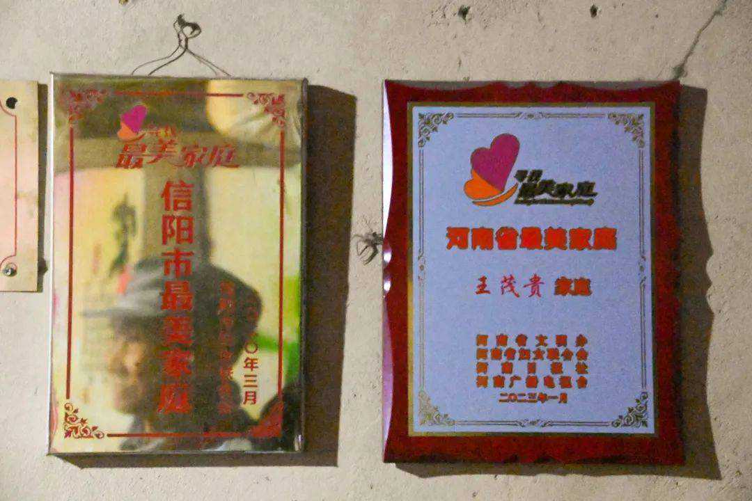 王茂贵家的土坯墙上挂着荣誉奖牌。