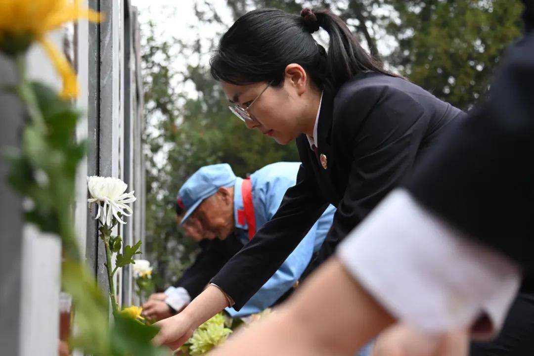 清明节前,检察官与王茂贵一起为红军烈士墓献花。