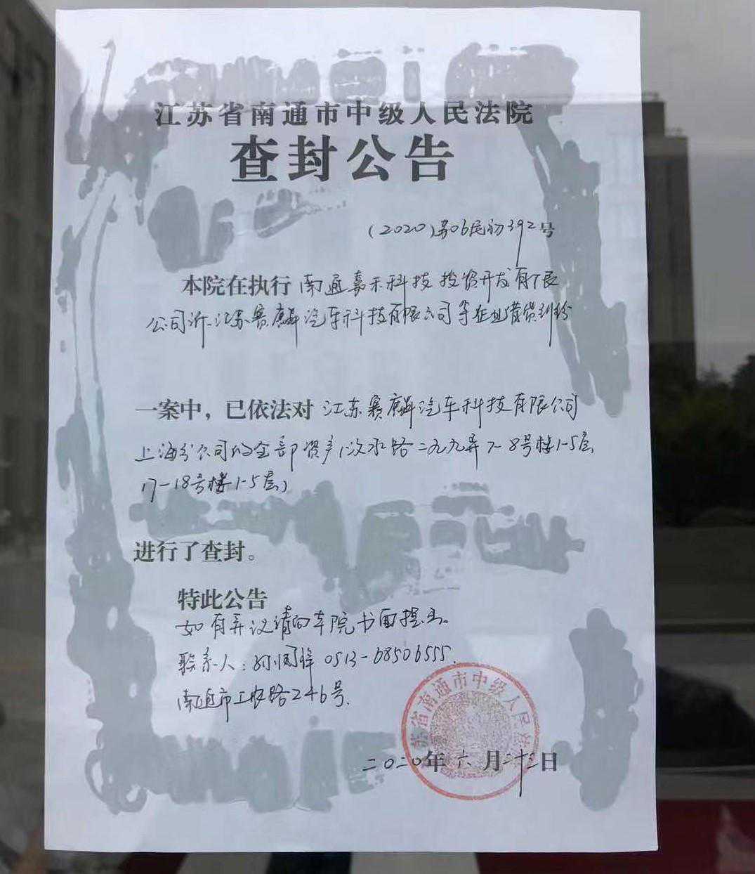 6月23日,江苏省南通市中级人民法院一纸公告,宣布查封赛麟汽车上海分公司。目前赛麟汽车上海办公区已无法进出,其在北京、上海等地的部分项目也被迫暂停。其实关于赛麟要“凉”的消息已经传了很久,早在今年4月,赛麟汽车就已经发布了特殊时期薪资发放方案,宣布对公司旗下员工采取降薪措施,部分白领职员工资降至往日10%-20%水平。