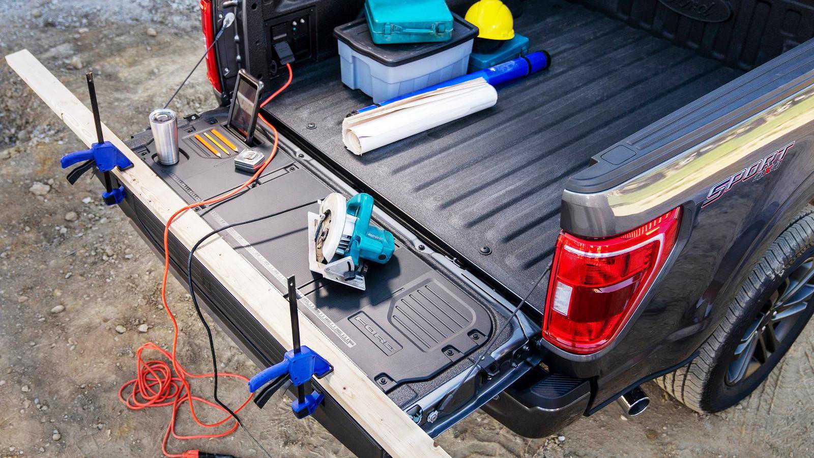 为了进一步发挥F-150的工具车属性,此次福特还在它的后斗内增加了更多的实用性功能。当尾门打开后,这里拥有标尺、固定槽、工具格等功能,能够完成一定的木材切割工作。