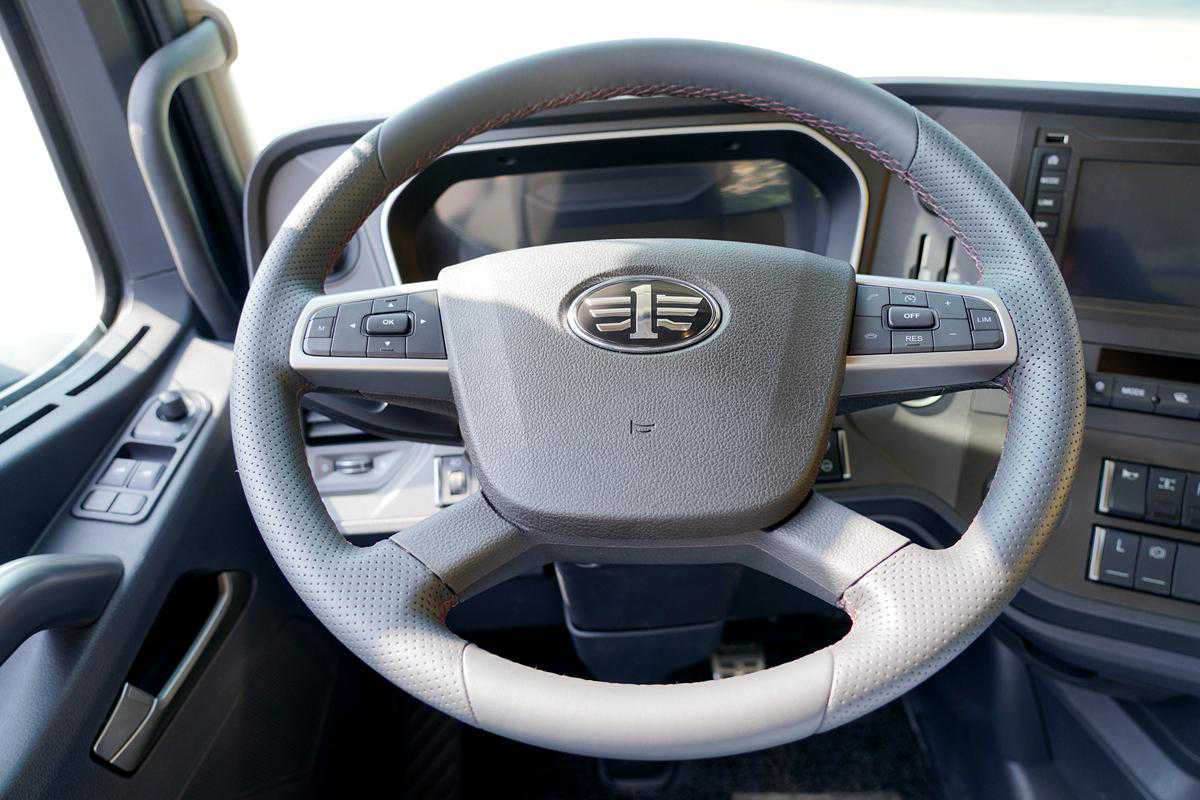 方向盘调节采用气动调节,可以支持上下、前后四向调节,基本上跟国外进口卡车方向盘调节无异。