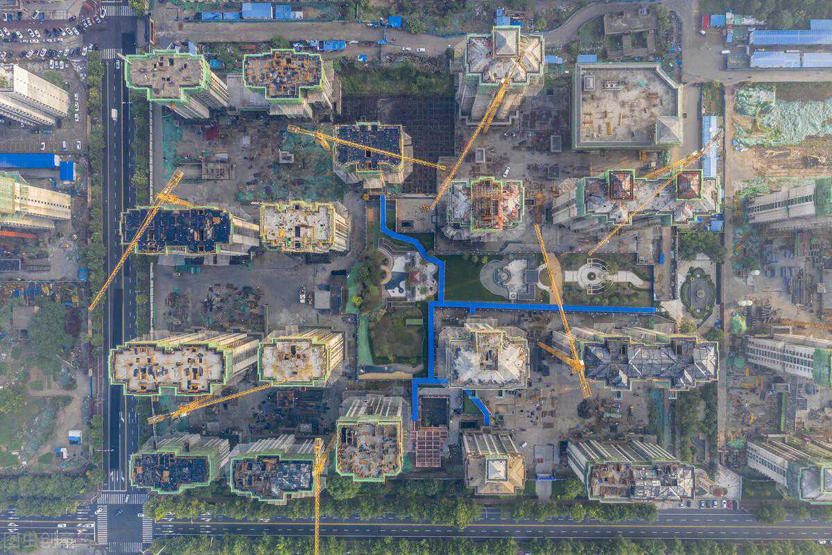 4、根据现场实际情况,该塔机采用固定式基础,为了安装拆卸方便,将塔吊全部安装在建筑物外围,先将1#塔前臂定向朝北;2#塔前臂定向朝东;3#塔前臂定向朝南,4#塔前臂定向朝东。