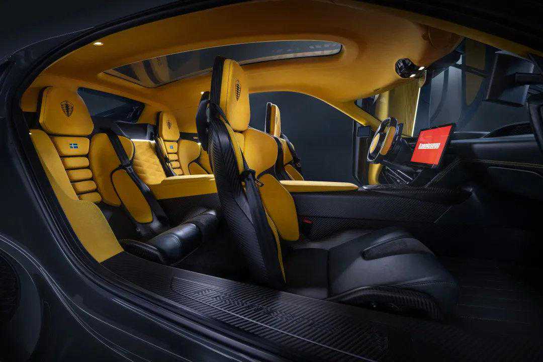 为方便前后排乘客上下车,Gemera采用尺寸更大的科尼赛克自动式同步旋翼门(KATSAD)。车门打开时,Gemera即展露出令人惊讶的宽敞四座空间,足够为前后排驾乘者提供同等的便利性与舒适性。