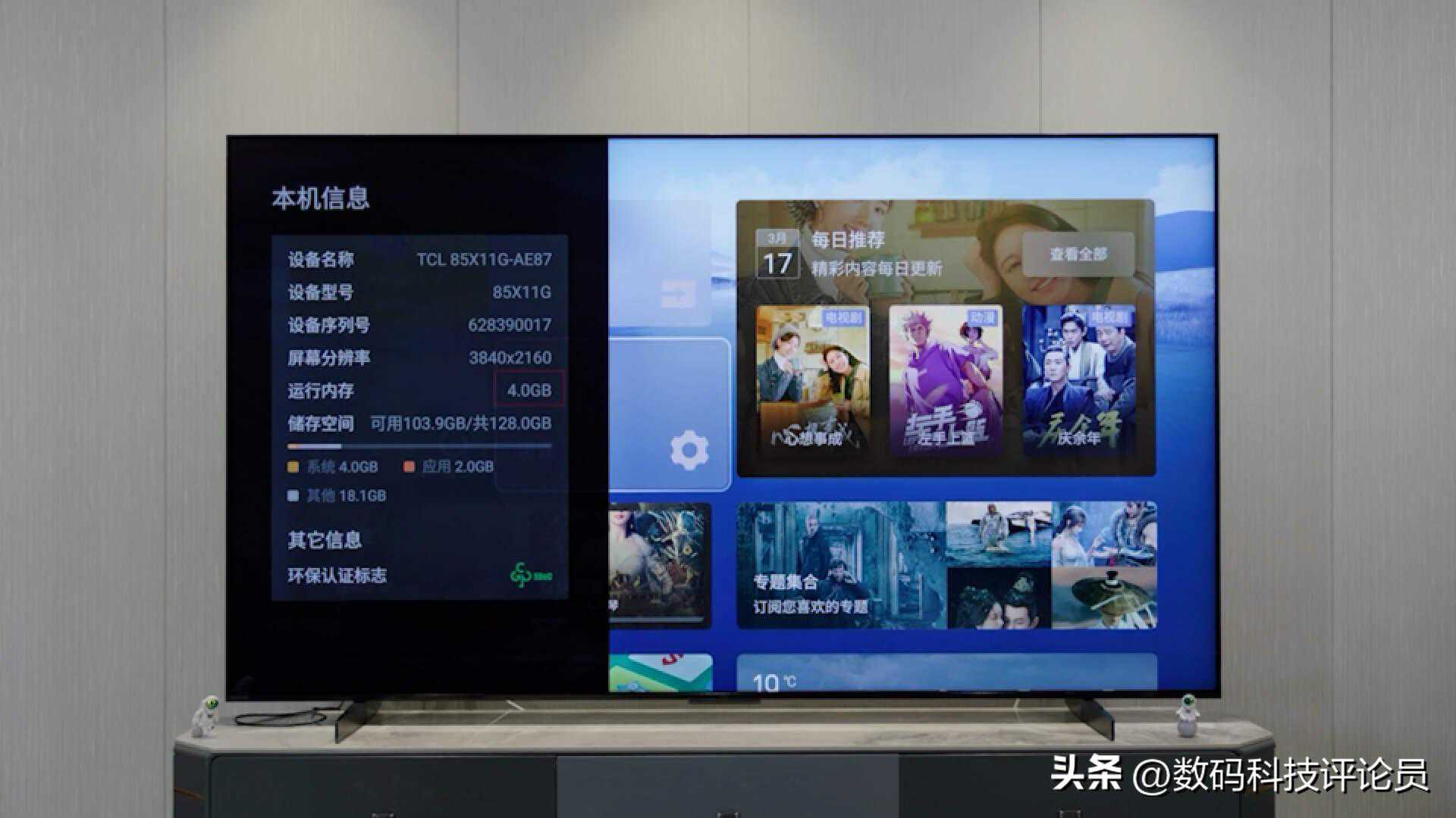 顺便插一句,关于电视尺寸如何选?之前我也总结了一下,观看距离2.5米选75英寸,3米就85英寸,3.5米以上就选98英寸。像我家里的客厅,观看距离2.9米左右,85吋比较合适,如果家庭客厅大,有条件的可以直接上98吋。