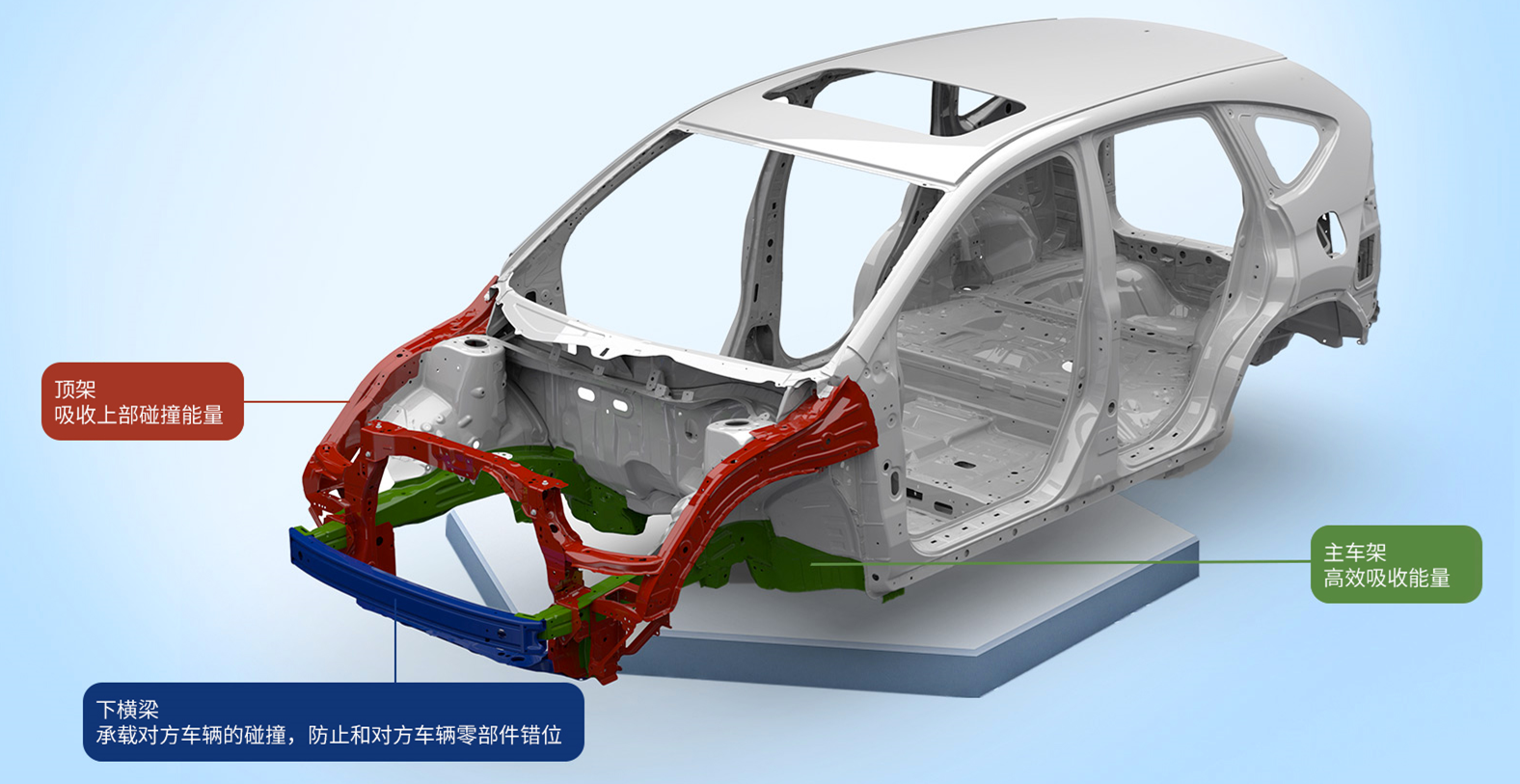 全系配备ACE承载式车身结构,这是一种可保护自己也可降低对外伤害的结构。正面碰撞时,ACE承载式车身用顶架和下横梁来吸收碰撞的能量,并将其分散到车身支柱和地板上,从而缓冲撞击,减少伤害。