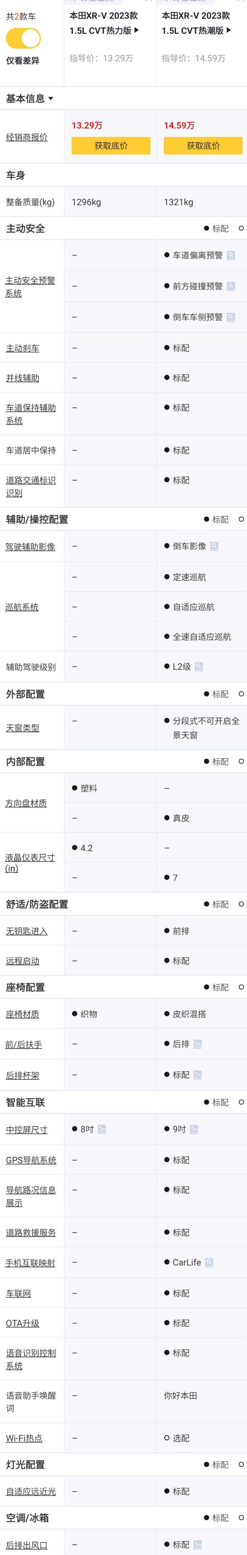 但应该看到,中低配车型依然没有倒车雷达,全系依然没有电动尾门,没有电动座椅,没有座椅加热和座椅通风,新款仅搭载1.5L发动机,并且动力还有所下降,油箱容积也比老款减少了10L,后排中间坐垫依然偏高,后排中间乘客乘坐感受差,底盘虽然有所改进但扭力梁悬挂舒适性整体还是欠佳等等,因此新款XR-V配置比老款有所改进,但程度有限,且对比同价位的自主车型,配置整体表现相当一般;