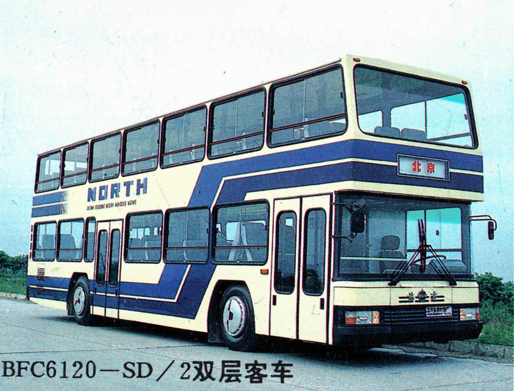1991年4月,为京津高速生产的北方双层客车BFC6120-SD/2通过技术鉴定。这是完全拥有国内自主知识产权的高速双层大客车,采用合肥淝河汽车制造厂生产的KL6120HJ3大型客车专用底盘,装配杭发斯太尔型发动机,最大功率260马力。变速器及转向器仍来自于ZF公司,转向器型号为ZF8043,变速器为ZFS6-90。整车设置85+1座,其中上层51座,下层34+1座,上层层高1.65米,下层层高1.73米。该型车最终并未获得大范围推广,但双层公路客车这一全新的概念及形式,亦深刻影响了我虢客车工业的后续发展。