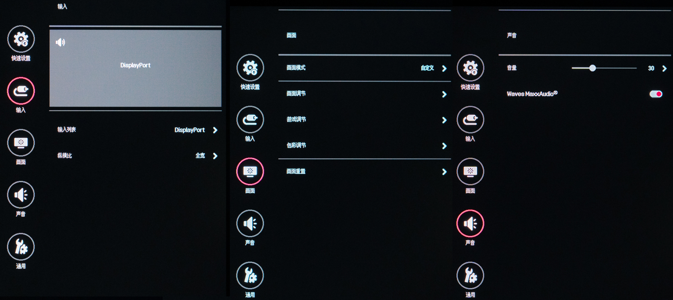 特别注意的是这个声音调节的地方还有个WavesMaxxAudio选项,可以进一步的改善显示器的音箱音质,让我们的音质更加动听:
