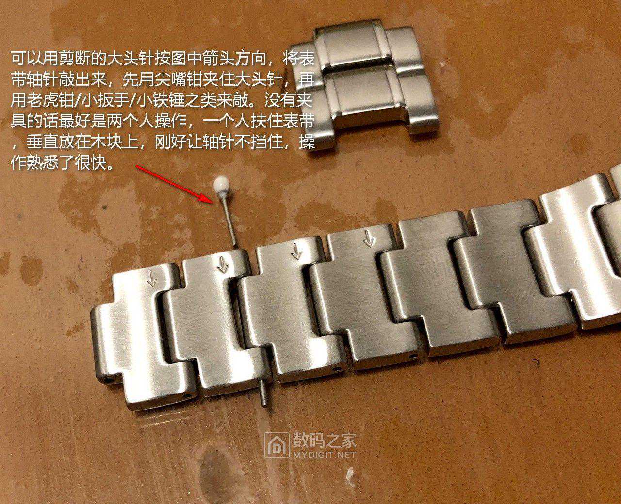 调节表带/拆串钉:因为没有专用的表带调节器,所以只好自己动手了,对于数码之家会员来说不是问题。