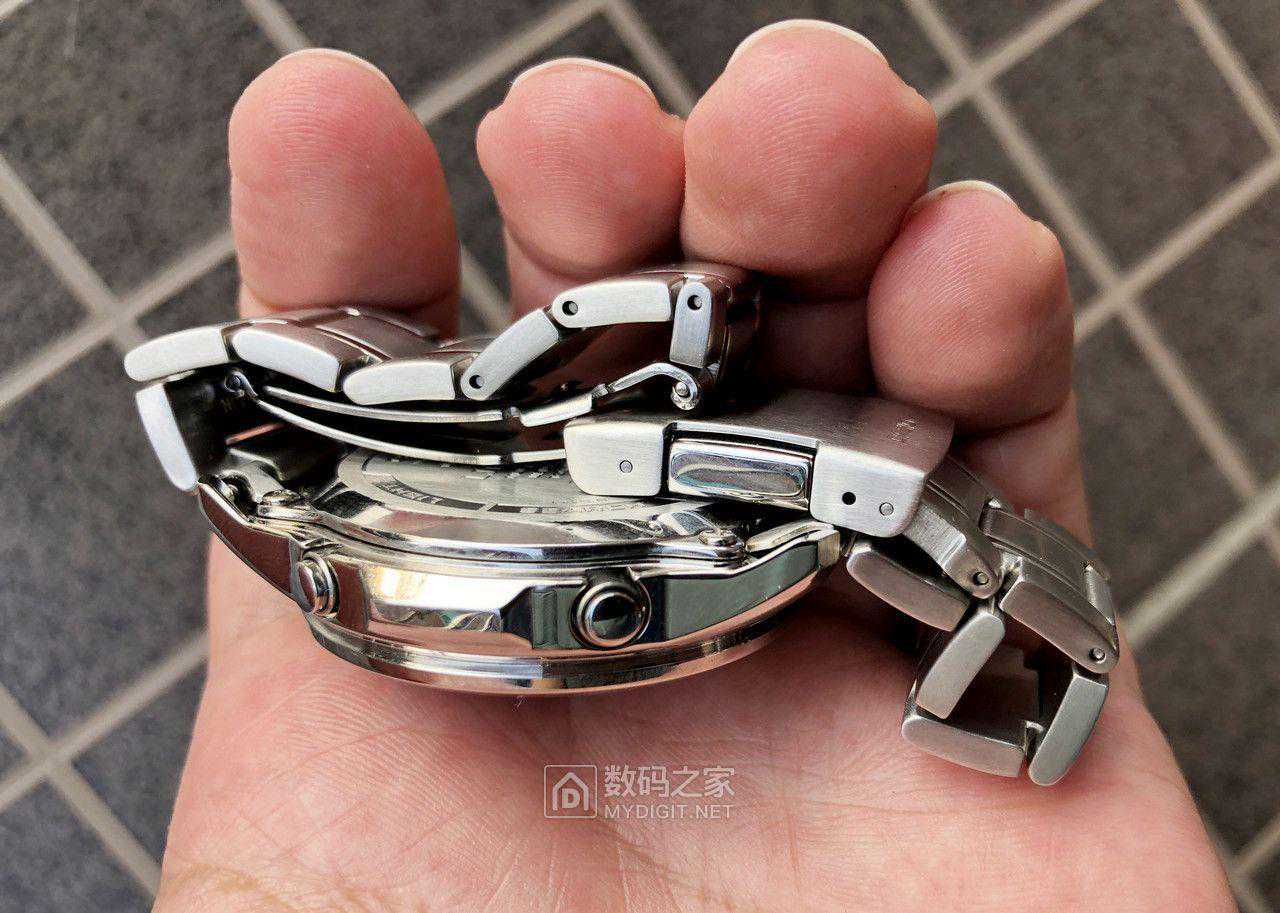 2、不锈钢表带相比钛合金重了不少,也更容易出现刮痕。