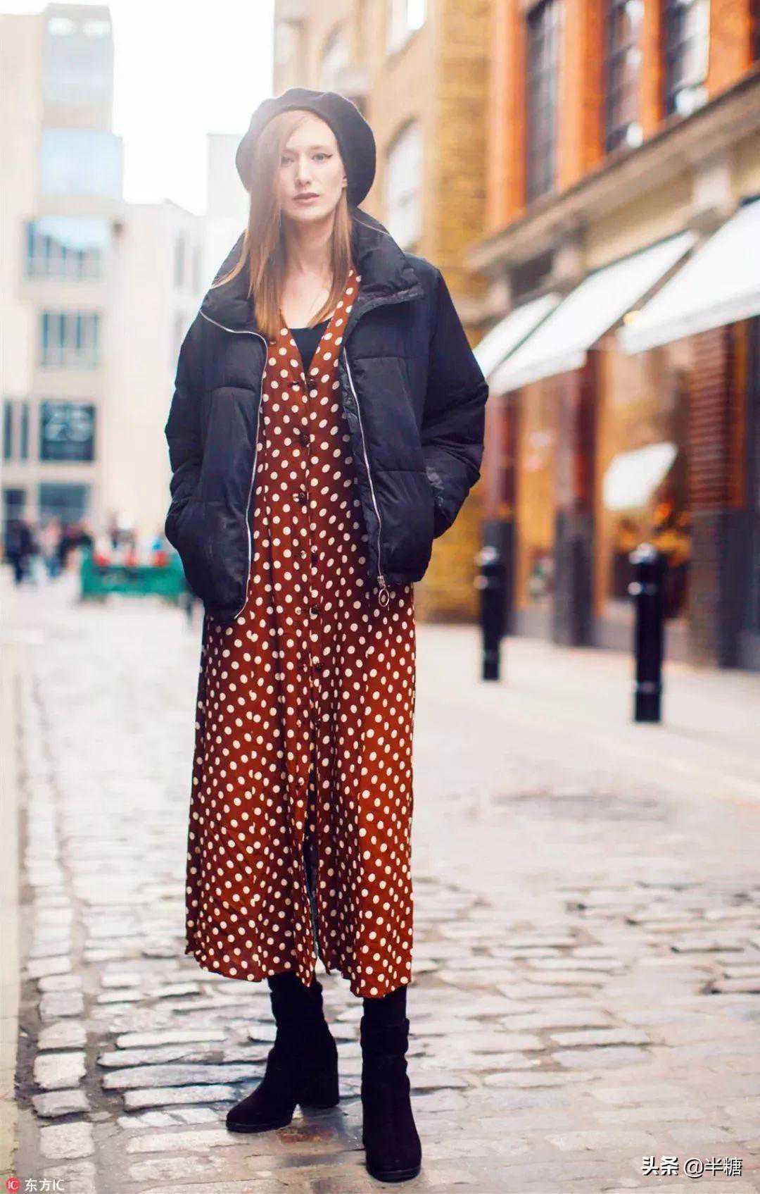 印花裙在冬天无论与谁搭配都是极好的,满满的法式风情,绝对能让你在人群中脱颖而出,天气不太冷的时候可以敞开穿,气场!