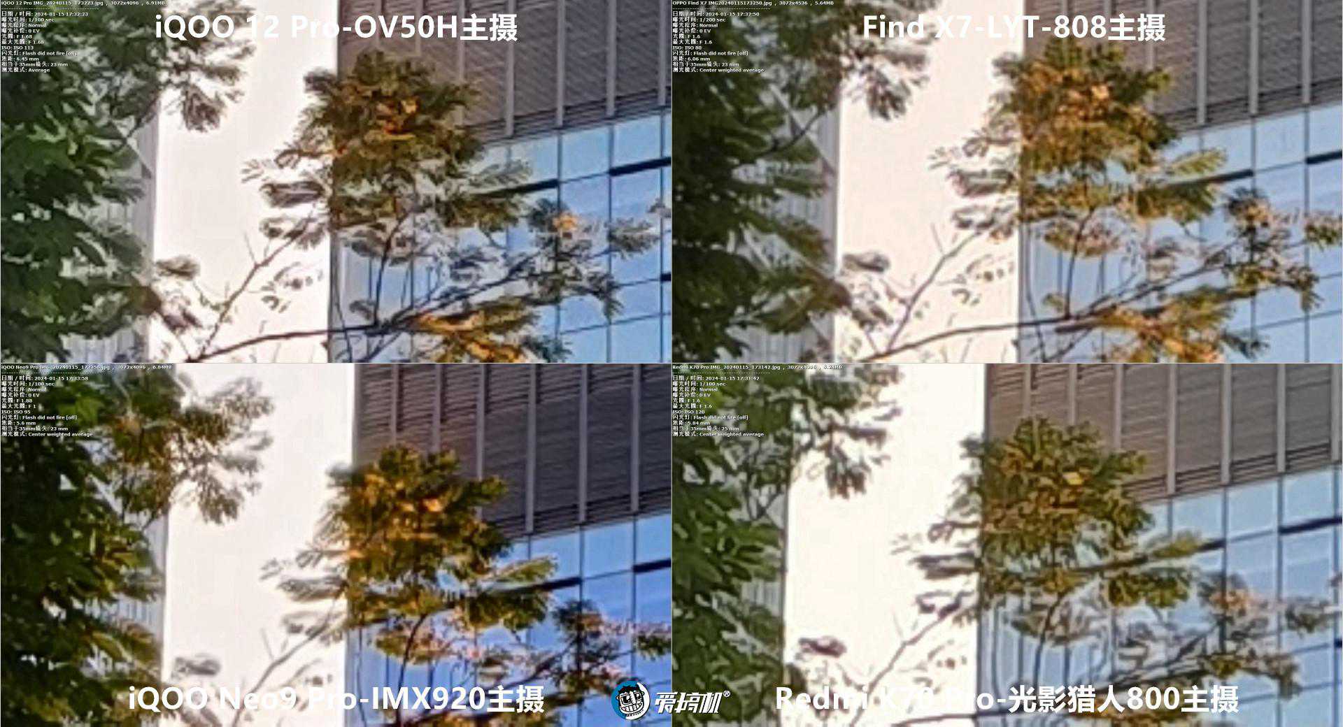 LYT-808主摄,规格比友商强,主要体现在宽容度更强一些。其降噪力度较轻,会保留一定程度的噪点,高光压制弱于iQOO和Redmi。整体能赢光影猎人800的Redmi,但只能和iQOO/vivo的IMX920“五五开”。