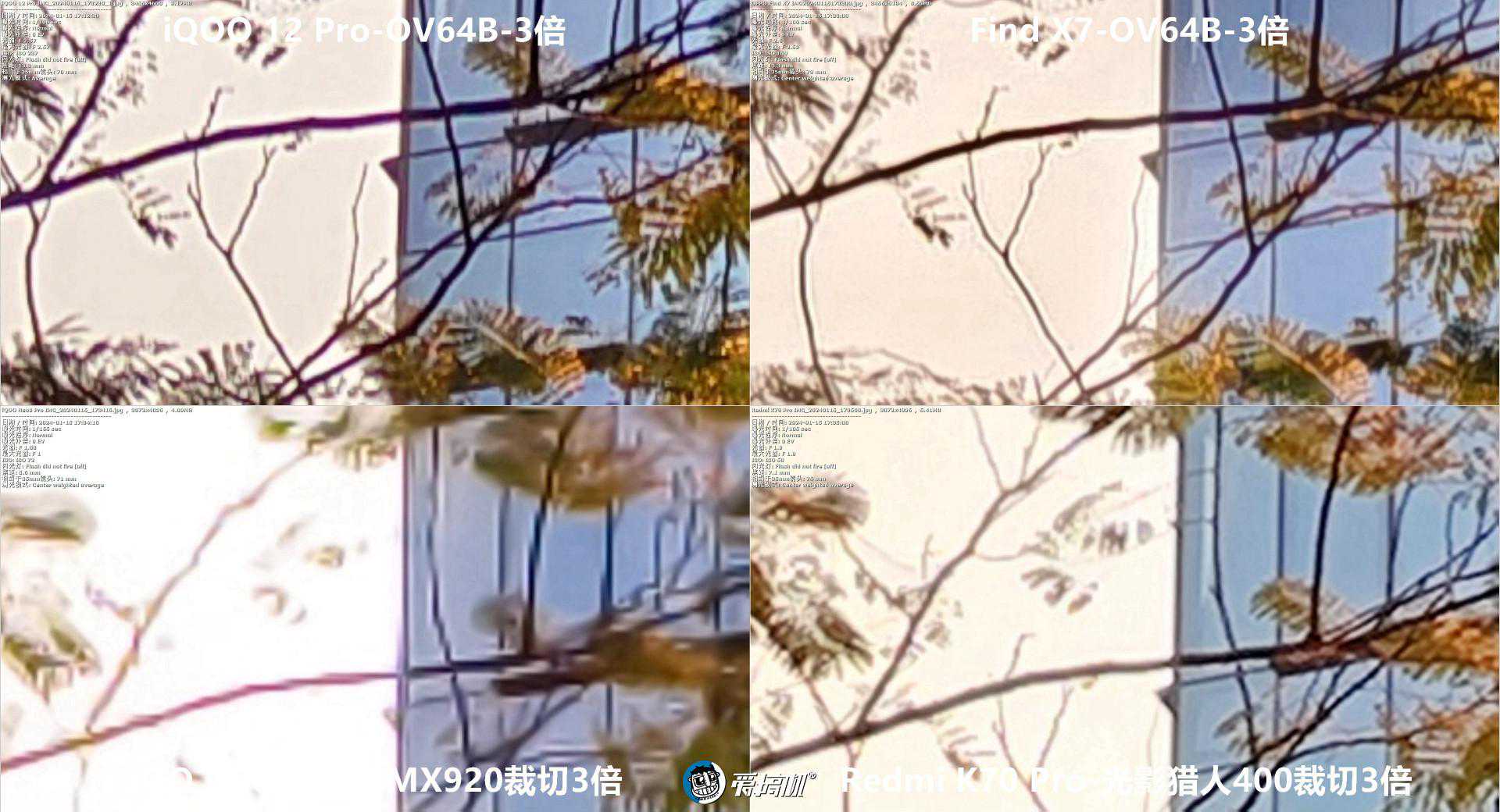 所以找了iQOO12Pro(OV50H主摄+JN1超广角+OV64B3倍潜望长焦)、iQOONeo9Pro(IMX920主摄+JN1超广角)拼凑,而RedmiK70Pro在旁围观(光影猎人800主摄+OV13B10超广角+2倍无OIS的光影猎人400长焦)。