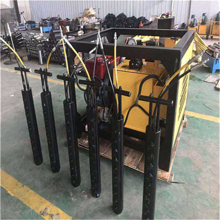 柱塞式分裂棒是一种新型的井下水力分裂器,破碎是水力静力的。首先在岩石上钻一个孔,然后在孔壁上施加一个静载荷,使岩石破裂或破碎。工作:柱壁裂杆工作时,可使用凿岩机或潜孔钻机钻大孔径,孔深至少1-2m。然后,将柱壁压裂杆干入钻孔内,启动液压泵站,几个水力压裂头同时伸出,对钻孔进行压裂。