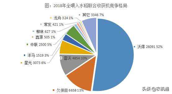进入2018年,水稻联合收获机竞争格局已经发生了天翻地覆的变化,沃得占有率超过50%,这是一种罕见的寡头垄断的格局,而昔日的霸主久保田的市场占有率只有13%,已经处于市场配角的地位,2019年上半年的销售情况看,这种格局正在趋于稳定。
