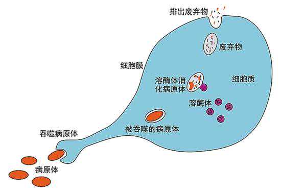 巨噬细胞吞噬被病毒感染的细胞示意图