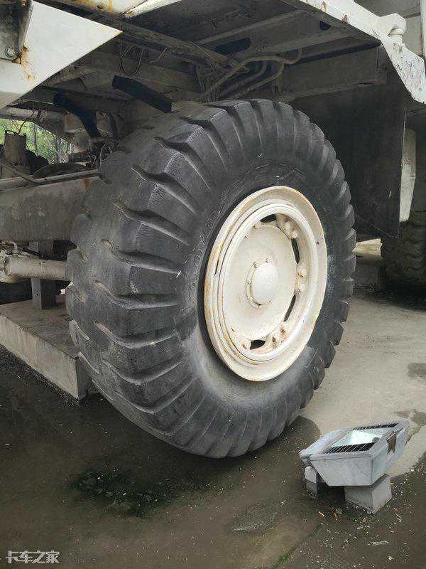 轮胎使用的是轮胎型号24.00x35,轮辋17.00/3.5,断面宽655mm,外直径2125mm(普通花纹)2175mm(加深花纹)10km/h,载重30750kg,充气压力800kpa50km/h,载重18500kg,充气压力650kpa。
