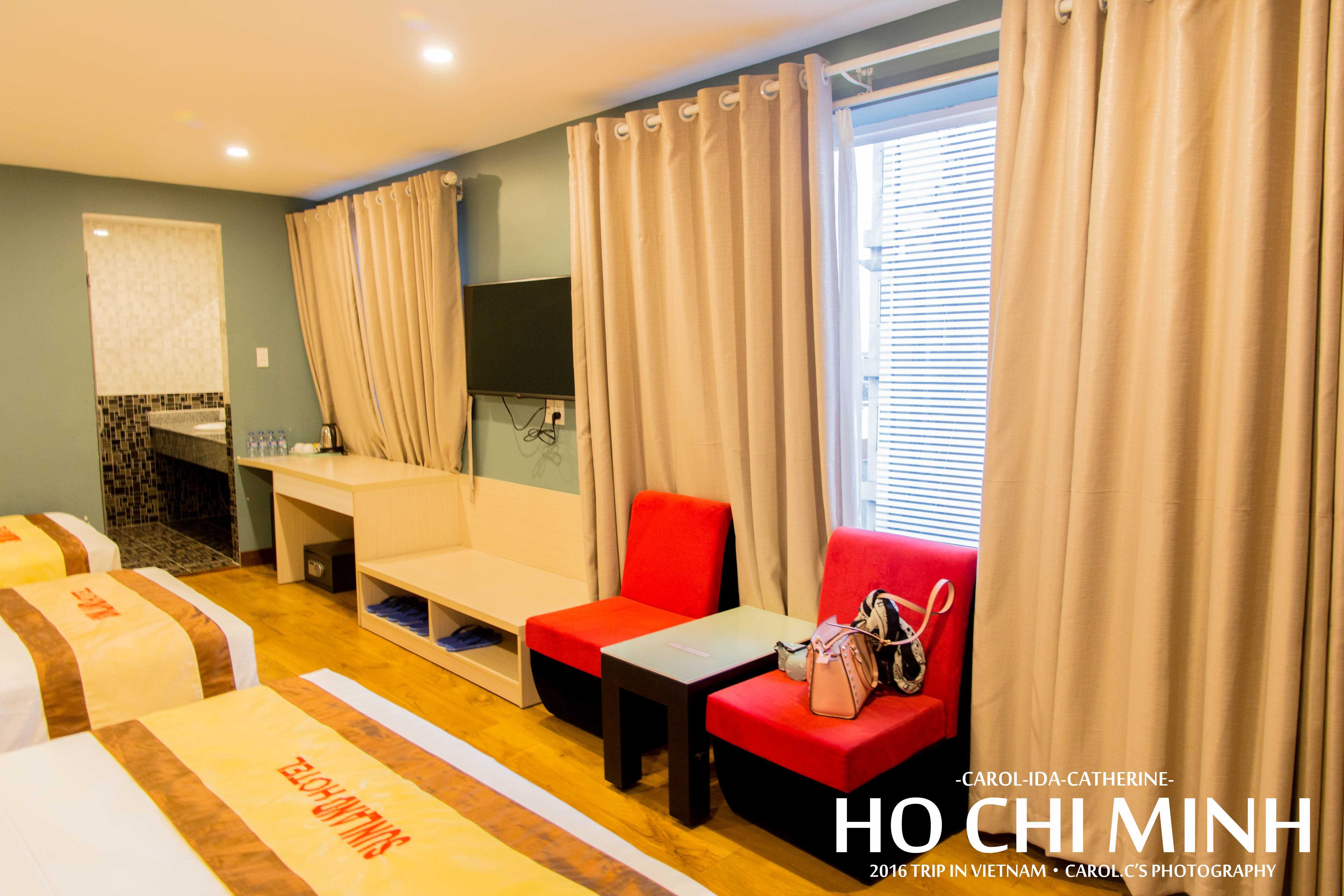 订的三人间,其实睡四个人也没问题,因为是一张双人床加两张单人床。离市区比较近,走到范五老街十几分钟即可,顶楼bar还可看到西贡河的美景。