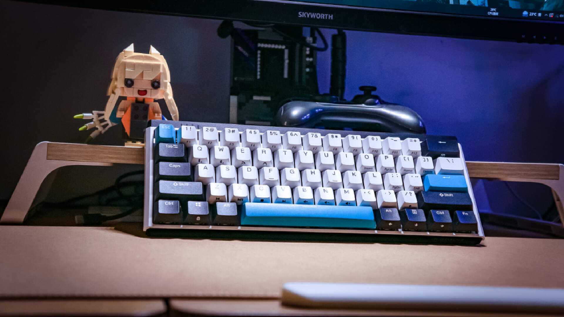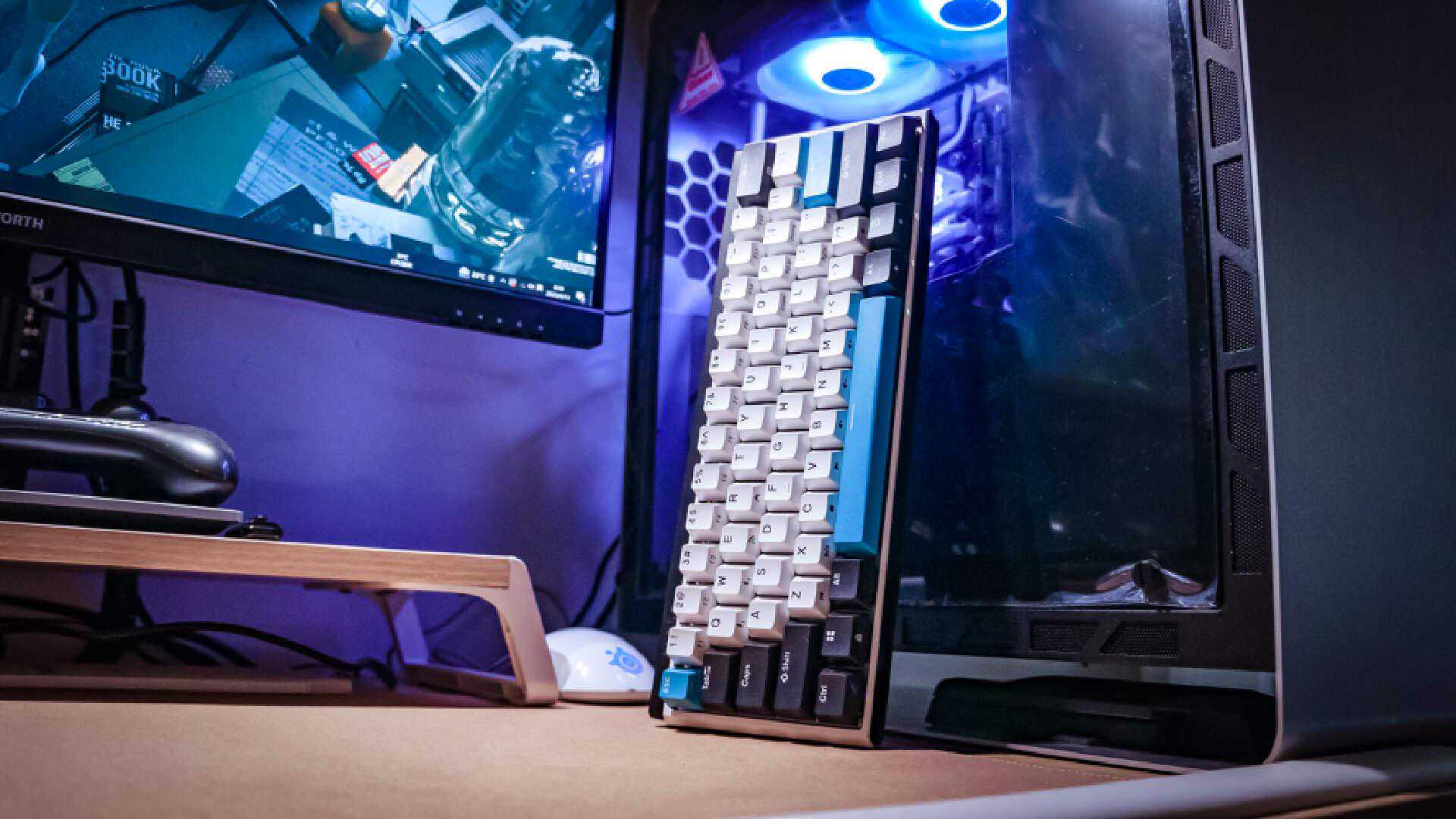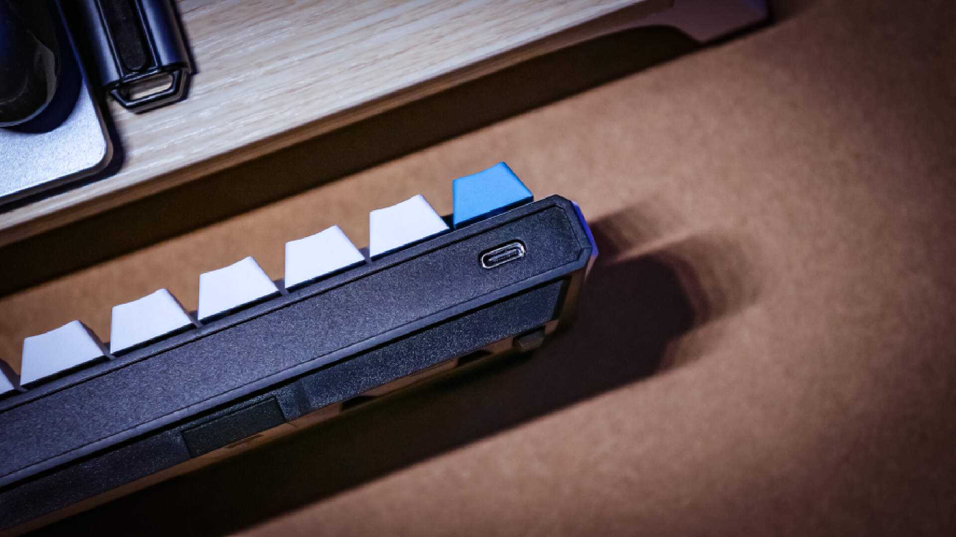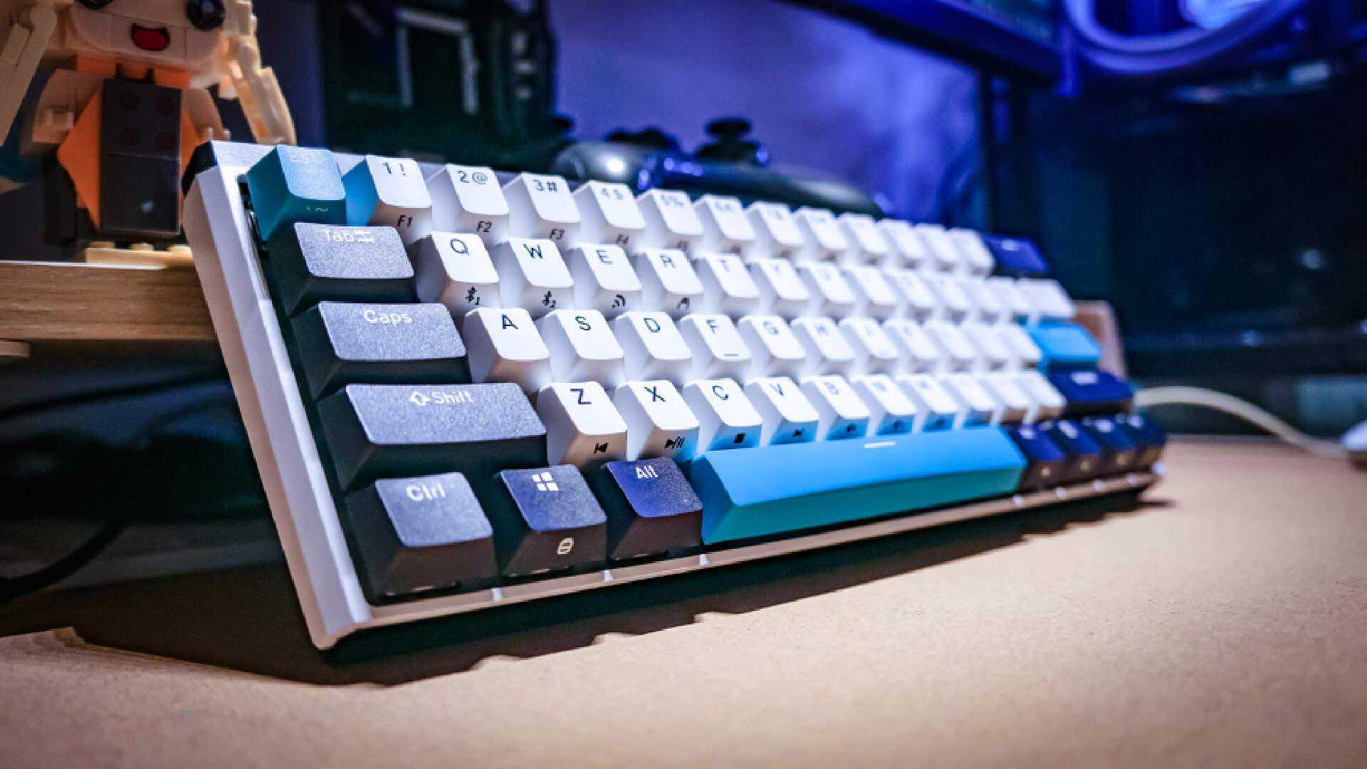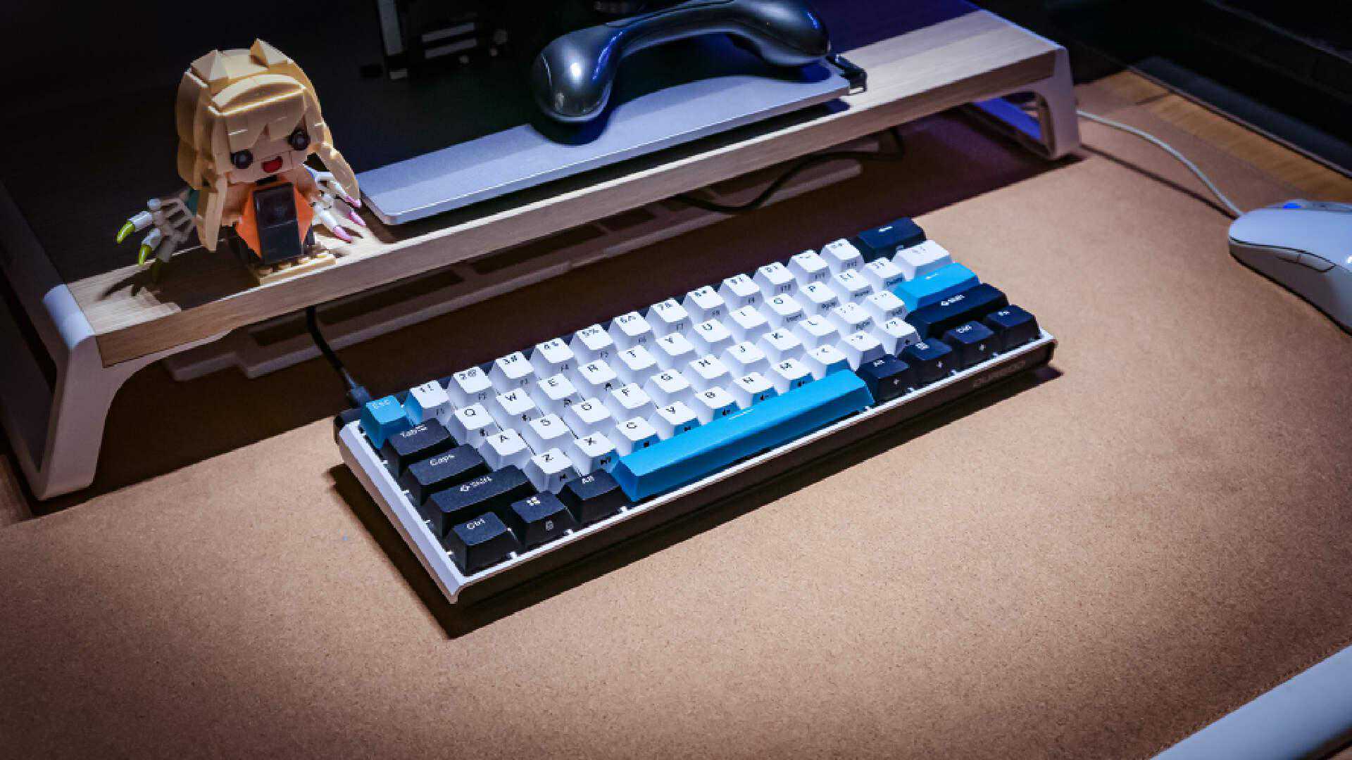 离子风暴属于K330W当中的中性配色,而且这也是小舅子最喜欢的配色。黑白蓝三色让这把小尺寸键盘看上去一点也不单调,无光的它摆在桌面上也可以轻松带来桌面氛围的提升。