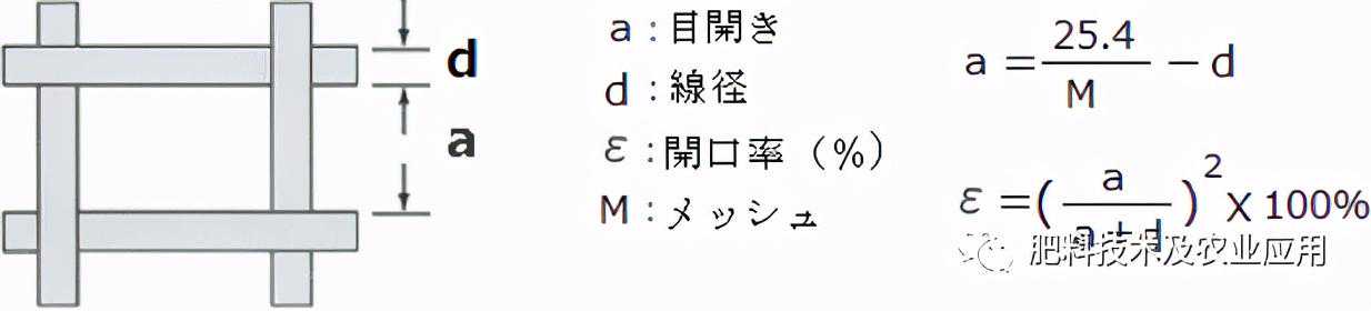 在日本,除特殊情况外,大多数肥料颗粒的粒径应为2~4毫米(美国为2~5毫米)。表1汇总了筛网的目数、筛孔径、网丝直径以及与此相关开口率的参考值。