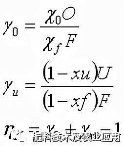 ȠN:牛顿效率,F:物体重量(kg),O:筛上物料重量(kg),U:筛下物料重量(kg),xf:物体中粗颗粒的比例(%),x0:筛上物料中粗颗粒的比例(%),xu:筛下物料中细颗粒的比例(%)