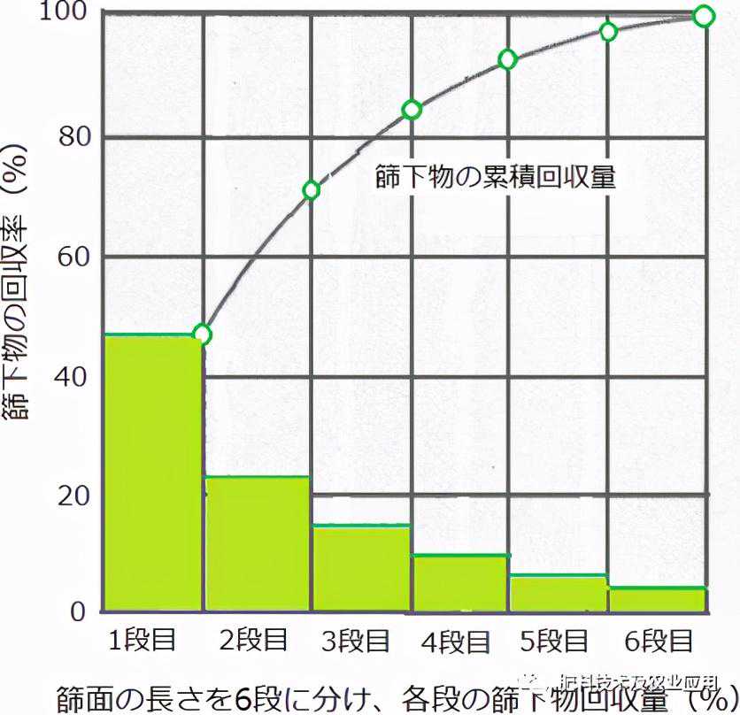 某一特定粒径以下颗粒的回收率是指筛分回收物料的重量与物体中含有的该粒径以下颗粒的重量之比(相对于设计筛孔尺寸)。计算公式